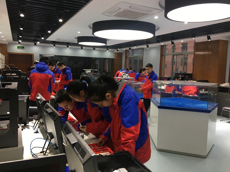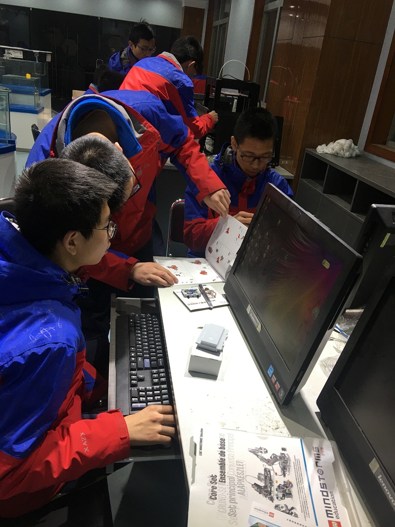 机器人活动是激发青少年对于科学技术的兴趣,培养创新意识和动手实践能力的重要手段,同时也是我校深化素质教育、促进学生全面发展的一项重要举措。我校机器人社团从上学期期末开始着手准备,在学校领导的大力支持和技术组老师的精心筹划组织下,于2017年7月正式成立。今年暑假曾组织4名学生赴北京参加清华大学“登峰杯”机器人大赛。高二1班的任思宇同学因为自身出色的机器人知识技能和丰富的参赛履历,近期刚刚通过严格的面试筛选,成功入选RoboMaster2018高中生机器人主题冬令营的入营资格。本学期机器人社团重点面向高一新生进行了成员的选拔和增补,目前共有社员21位,由技术组薄雪娟老师担任指导教师。
