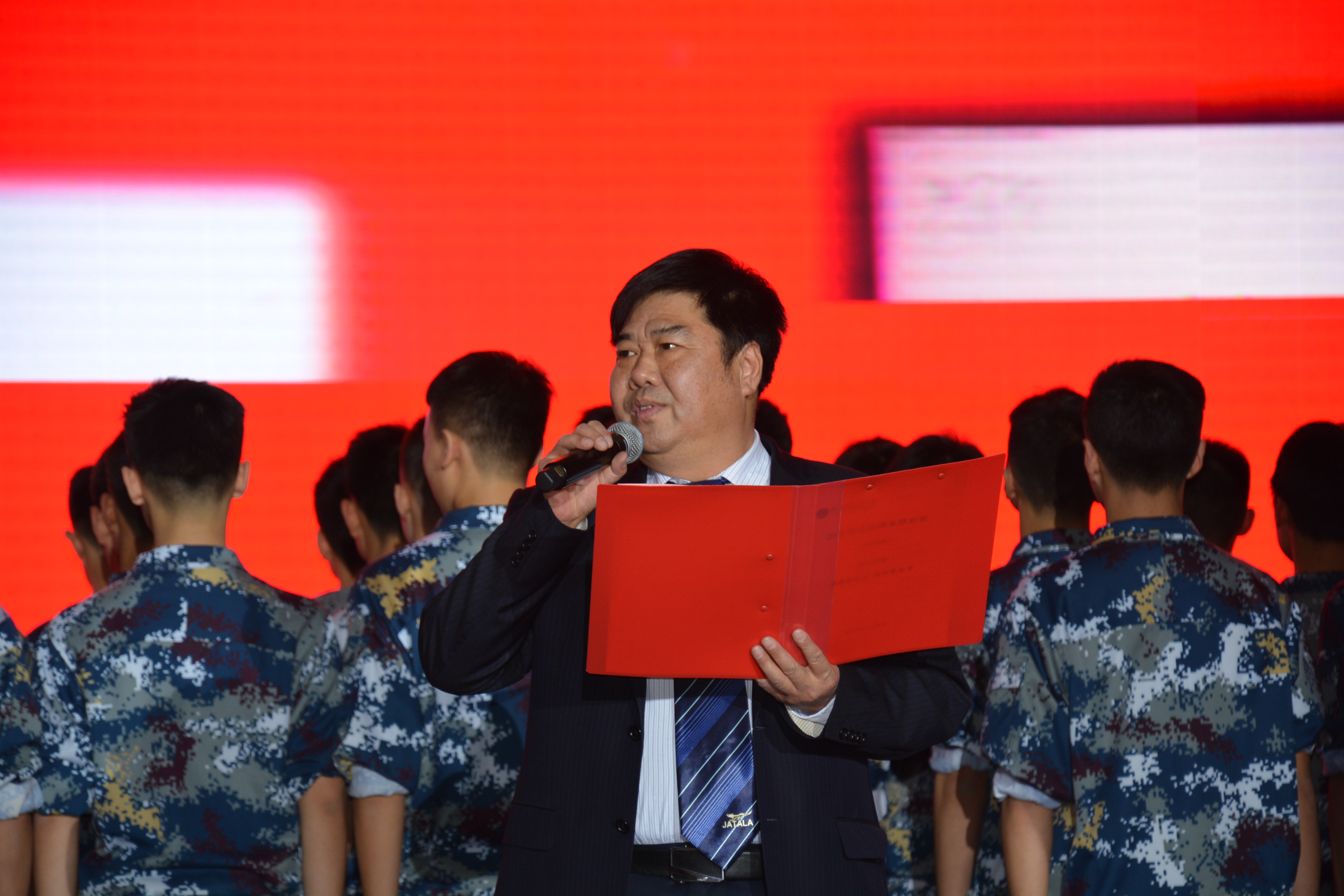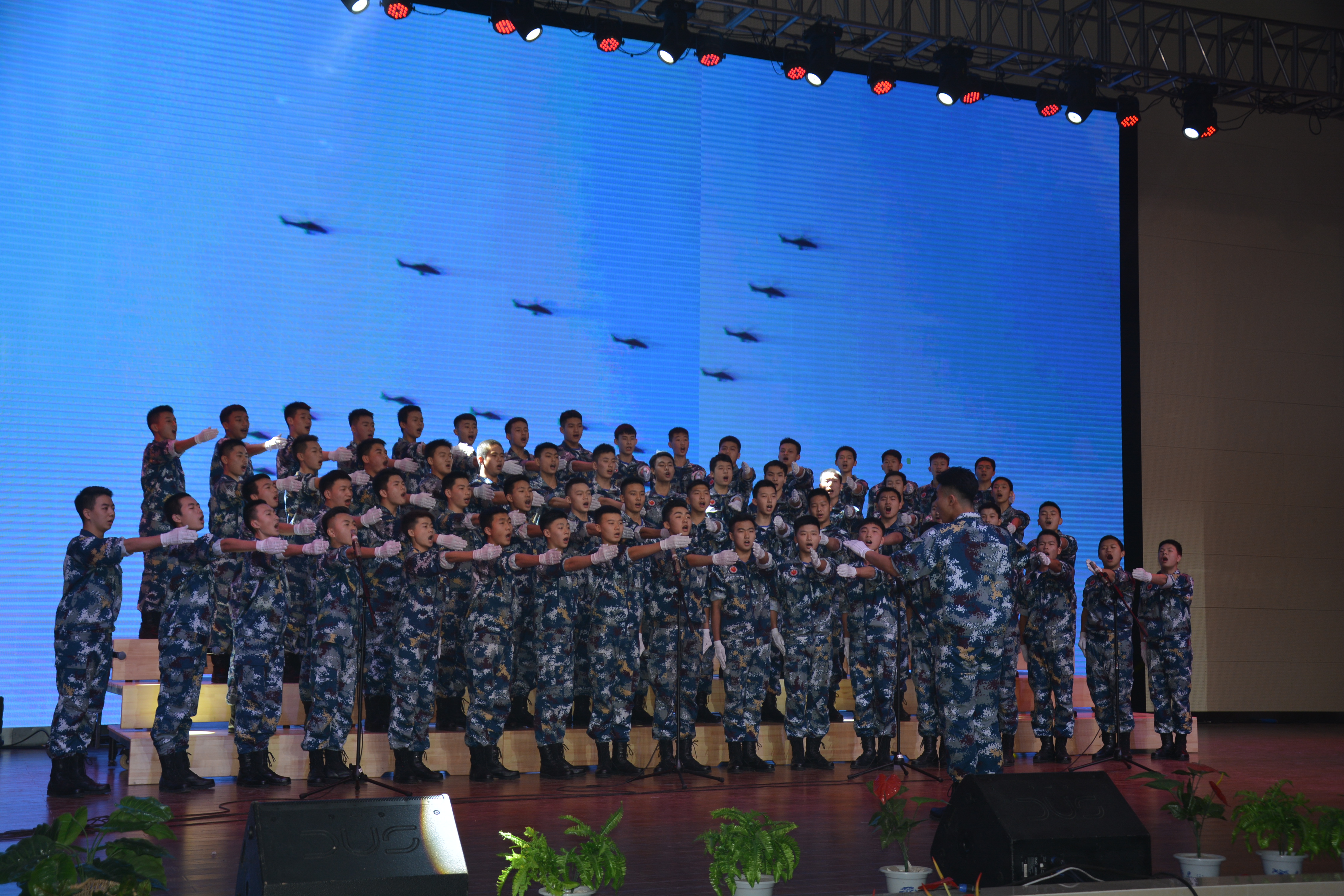 随着主持人宣布演出正式开始!航空班合唱团队亮相上场,引来一阵阵惊叹声:“好帅啊!”“好棒啊!”“哪里是学生,已经是军人的风采啊!”西中雏鹰大声喊出他们的最强的心声:“我们时刻准备着!”感动了在场所有的人。
