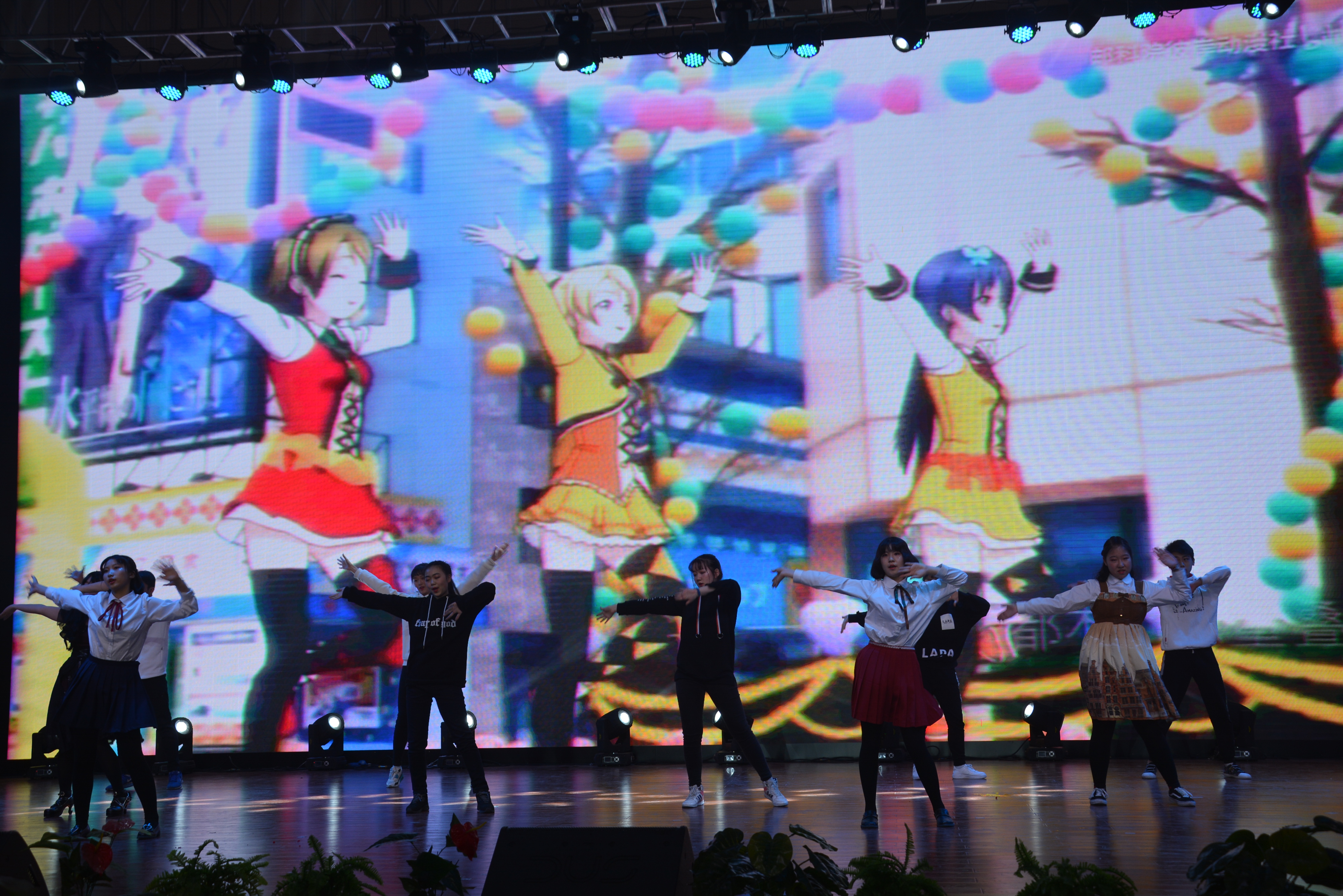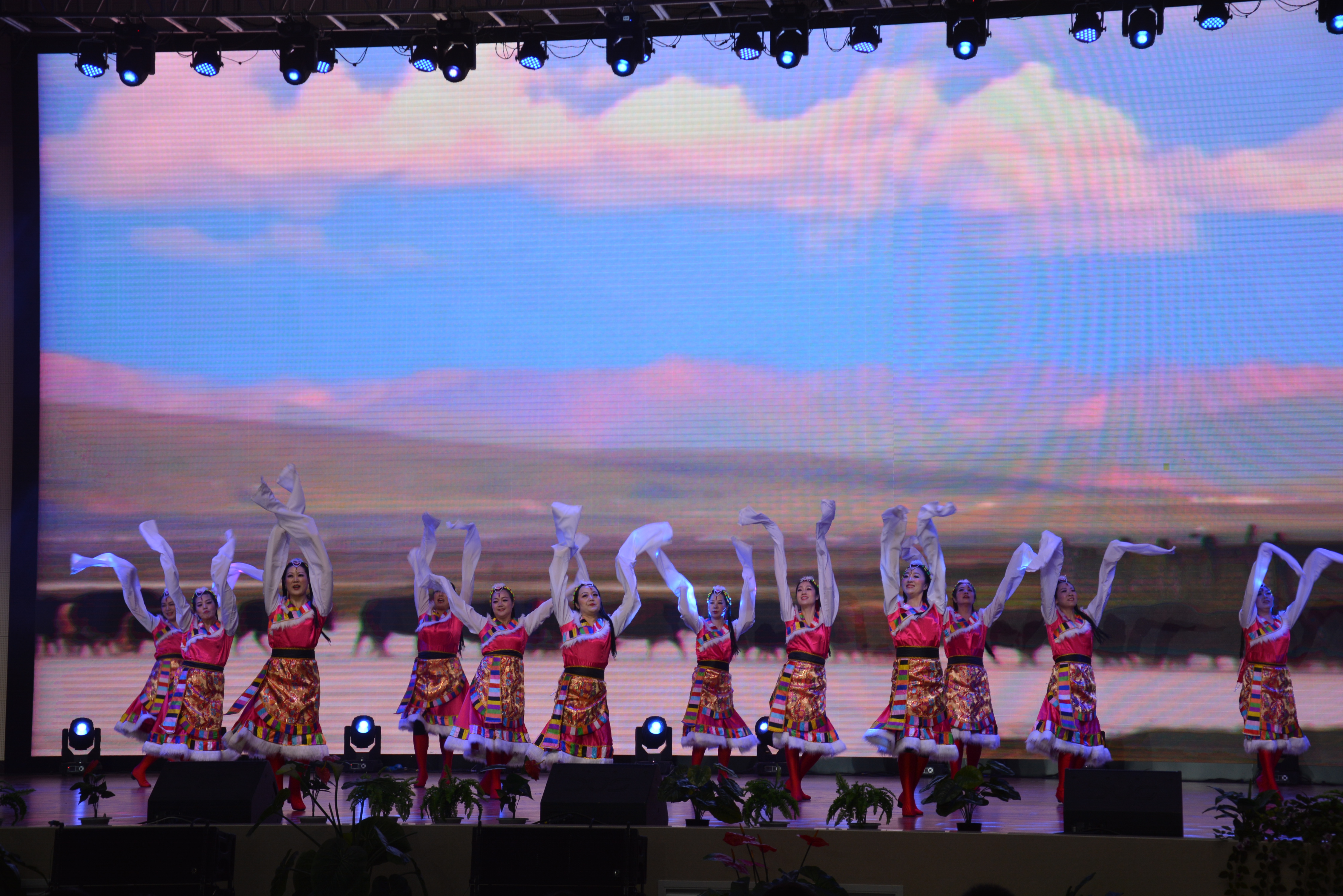 高二年级部以歌舞为主,乌兰同学高歌《亲吻祖国》,唱出人民对祖国的热爱和柔情;以大家耳熟能详的甄嬛传为背景音乐的《惊鸿舞》翩若惊鸿,婉若游龙,让观众欣赏了古典美;街舞《uptown funk》活力四射,又把人们拉回现代动感潮流的视觉;家长们的舞蹈《天籁之爱》演绎雪域高原的豪放与热情,为大家带来了最暖的祝福;歌舞表演《最美的你》,伴随着学生和老师的深情对唱,老师们和学生在一起的场景在大背景上闪过,全场再次嗨翻!