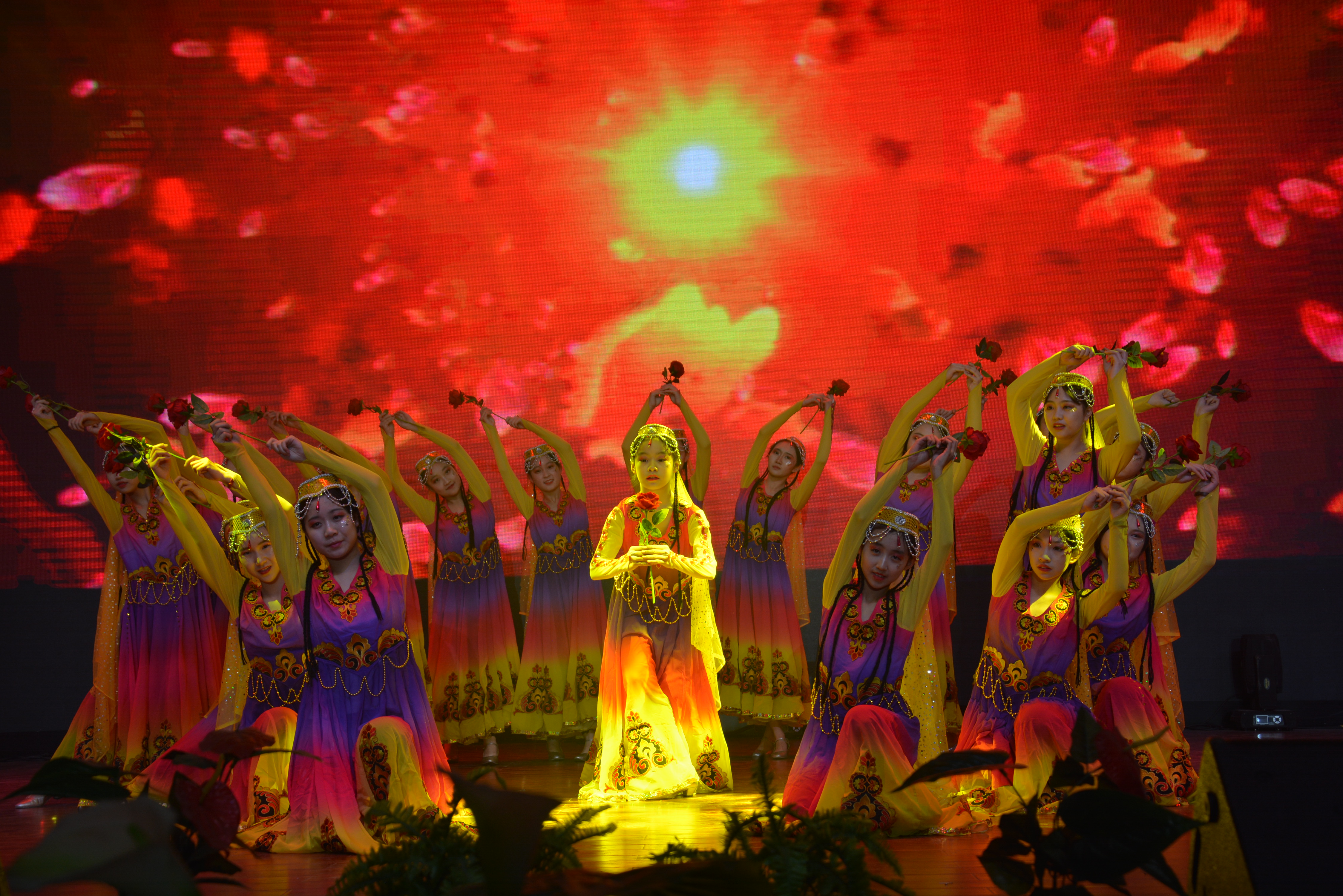 经开一中是我校托管的分校,也是西中人的一份子,师生联欢自然不能少了他们。学生舞蹈《花儿为什么这样红》舞姿优美,尽情展示花儿的美丽与绽放;小品《为了孩子》用夸张文艺的手法演绎老师们生活与工作中趣事,带给大家轻松与快乐。