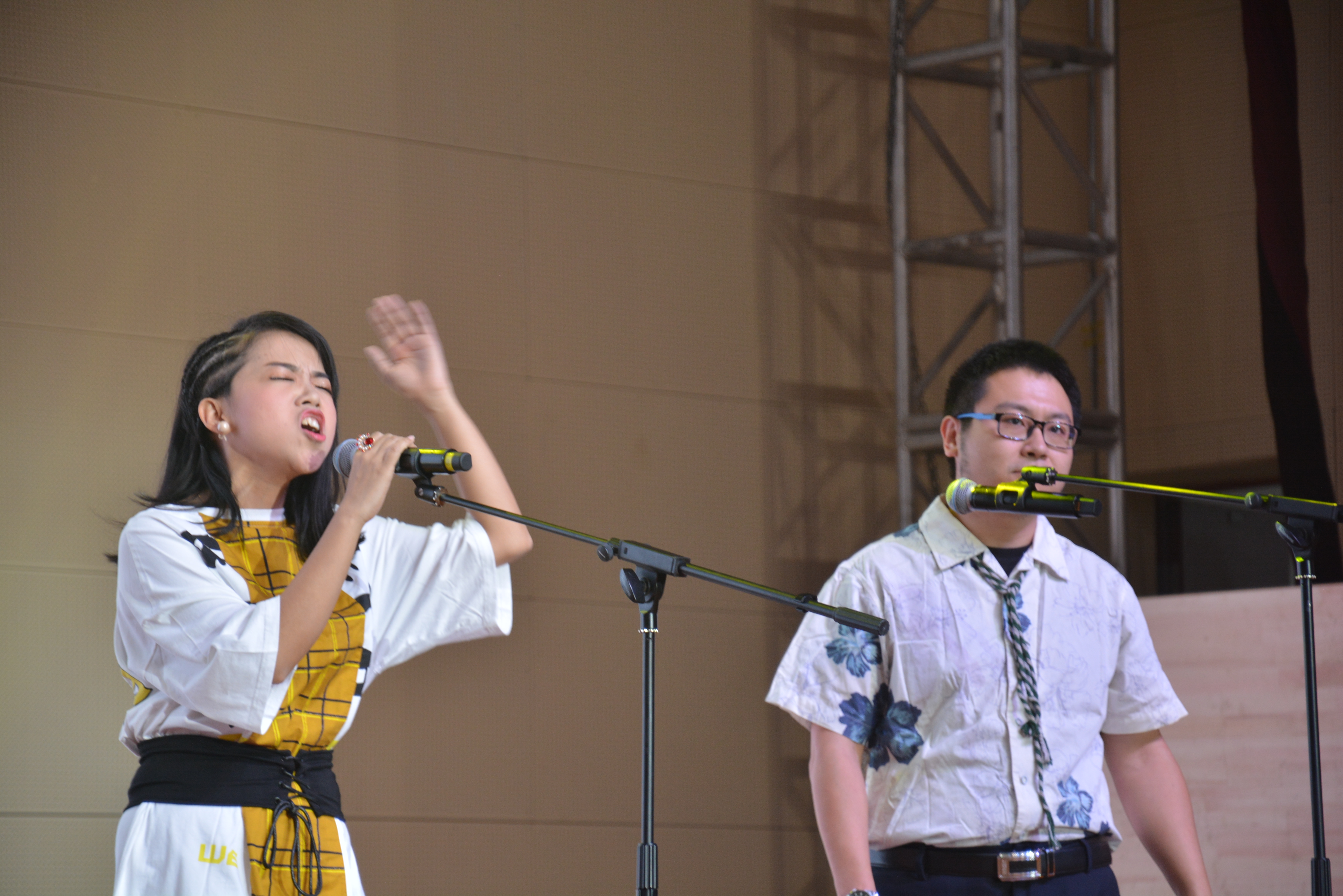 当人们耳边还沉浸在英文剧的时候高三年级部的节目开始了。两位学生的相声《我爱陕西话》说学逗唱,惹得观众不由得开怀大笑,使劲儿鼓掌;老师们则为观众献上一台摇滚撞上戏曲的混搭版本《长安长安》,画面唯美,唱腔专业,以为是专业演员助演来了!