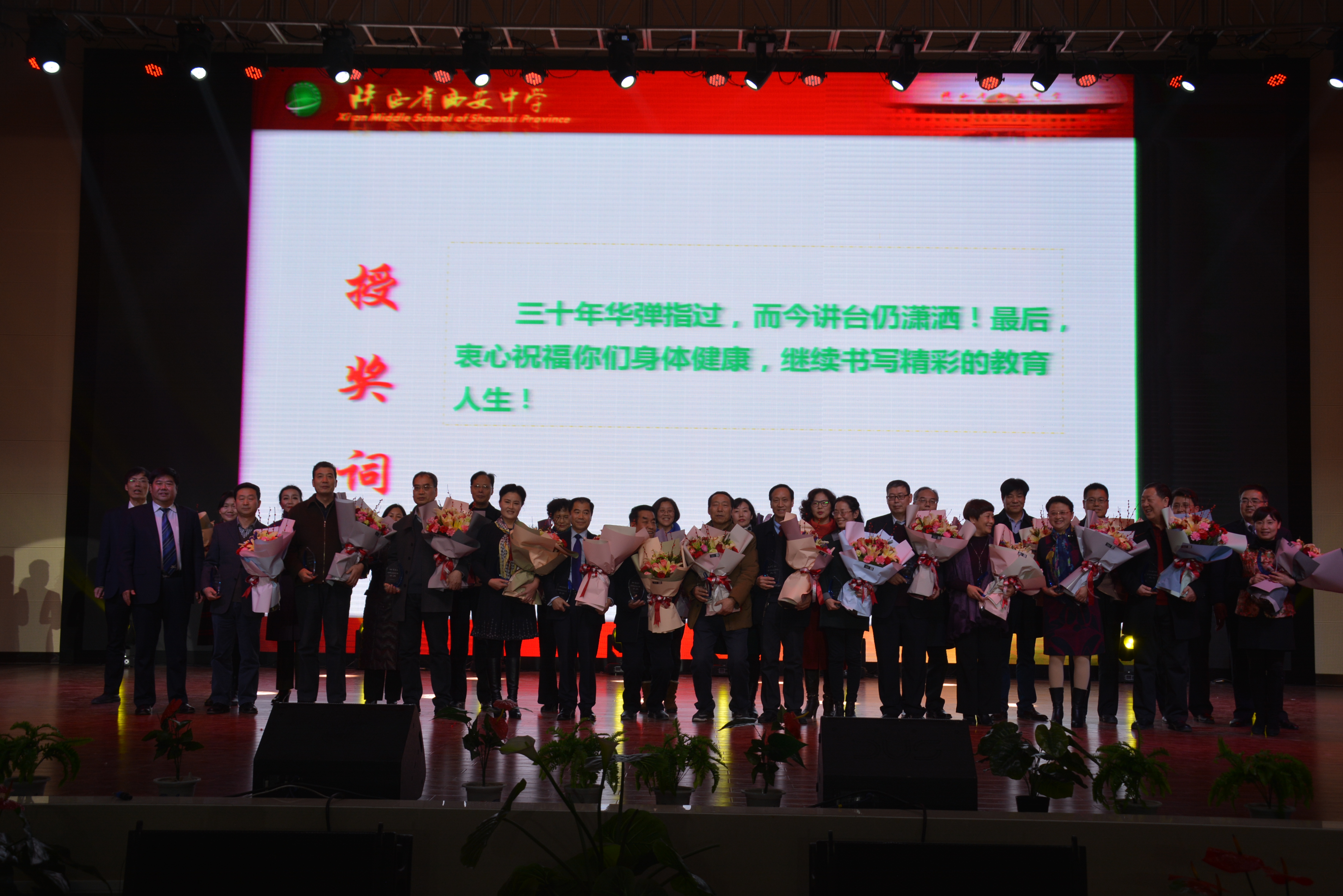 就在这时,伴随着李文耀副校长宣读的颁奖词和老师们年轻时代与30后的照片背景,26位教龄30年的老师一一走上台,张克强校长等领导为他们颁奖授牌!这是最暖心的时刻,引发学生们的欢呼声,也让在场的老师同行和家长们感概万千,热泪盈眶。人生能有几个30年!他们把自己最美的青春献给了教育事业,他们就是今天最美的人!