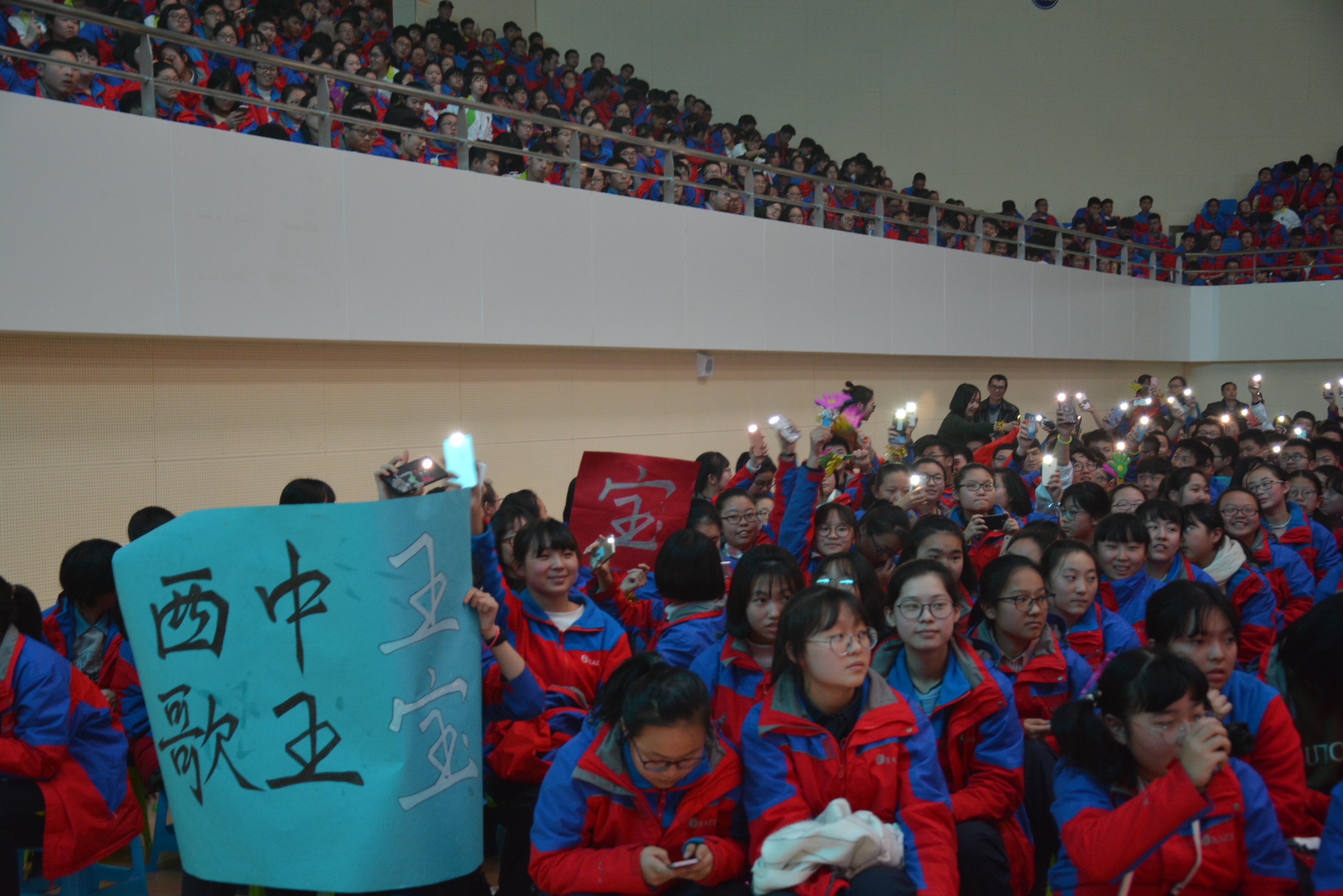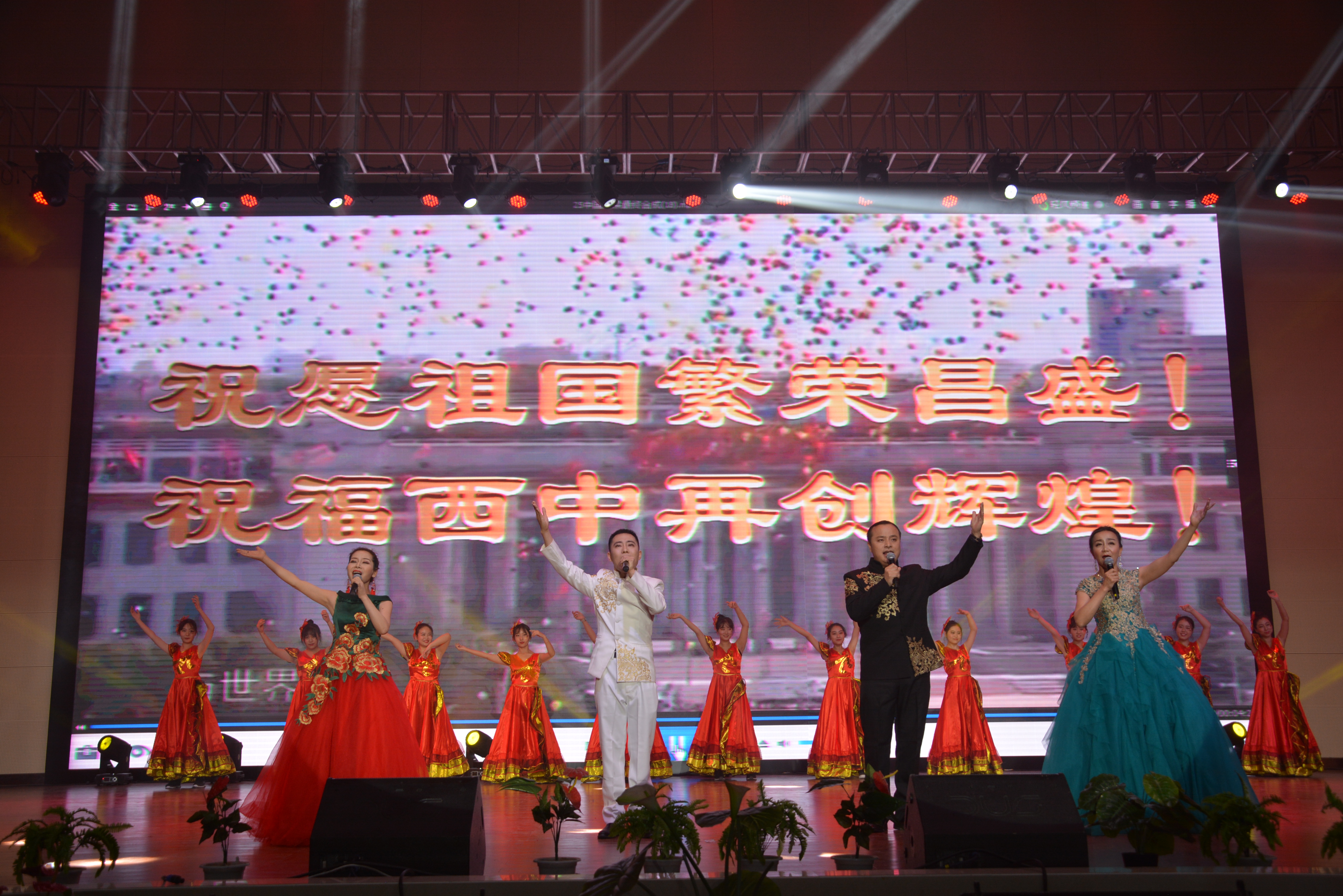 最后,四位西中老师激情演唱《中国脊梁》,背景上是习主席带领中国人民,让中国日益强大起来的画面,激奋人心,全场共鸣,把西中梦、中华梦的热情再次点燃,把学生、老师和家长的心紧紧地凝聚在一起。