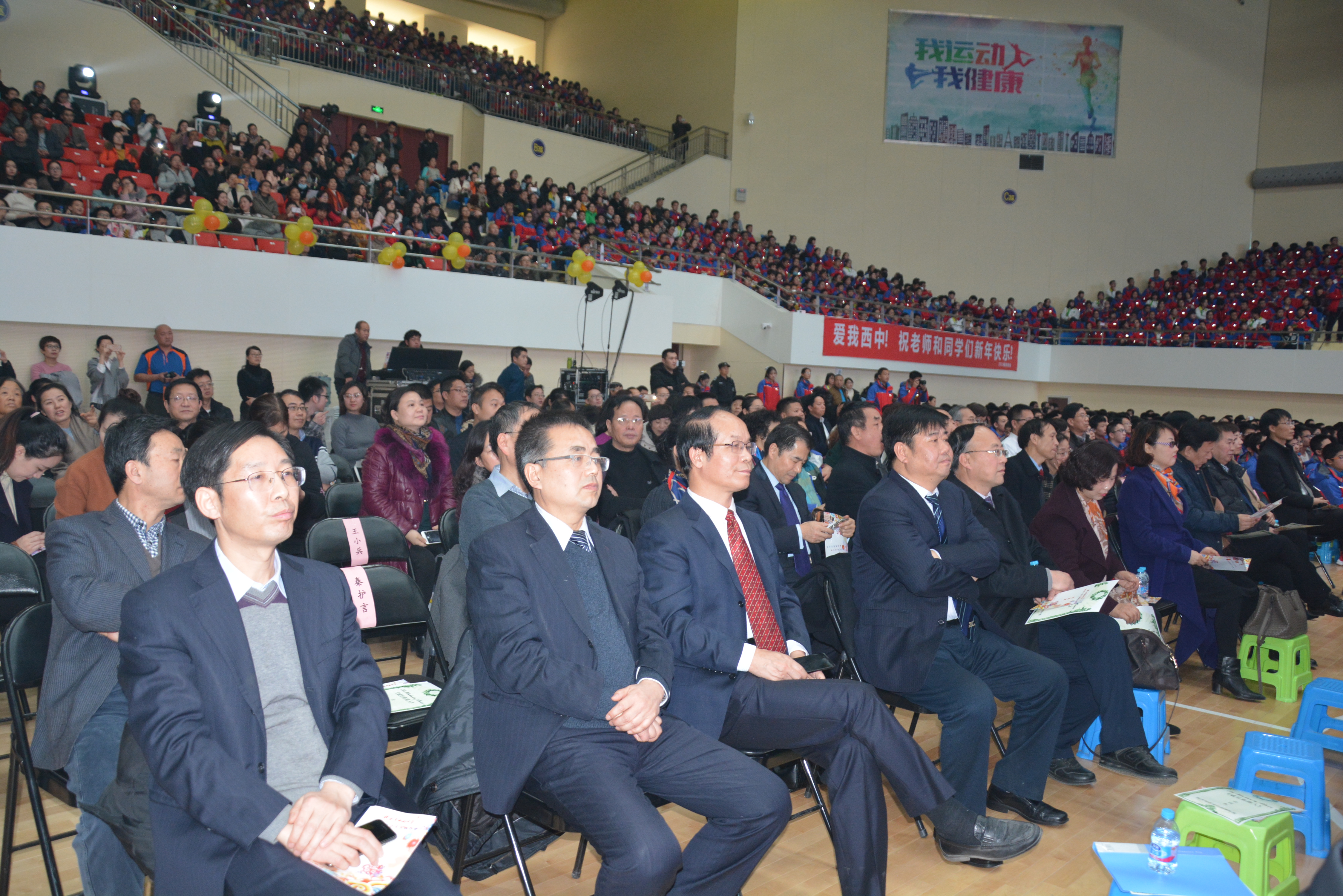 在这辞旧迎新的日子里,师生们用热情与激情来表达喜悦,传达对新的一年的憧憬。张克强校长以配乐诗朗诵的形式,回顾西中一年来取得的辉煌成果,展望未来美好愿景,向全校师生、全体家长问好祝福。