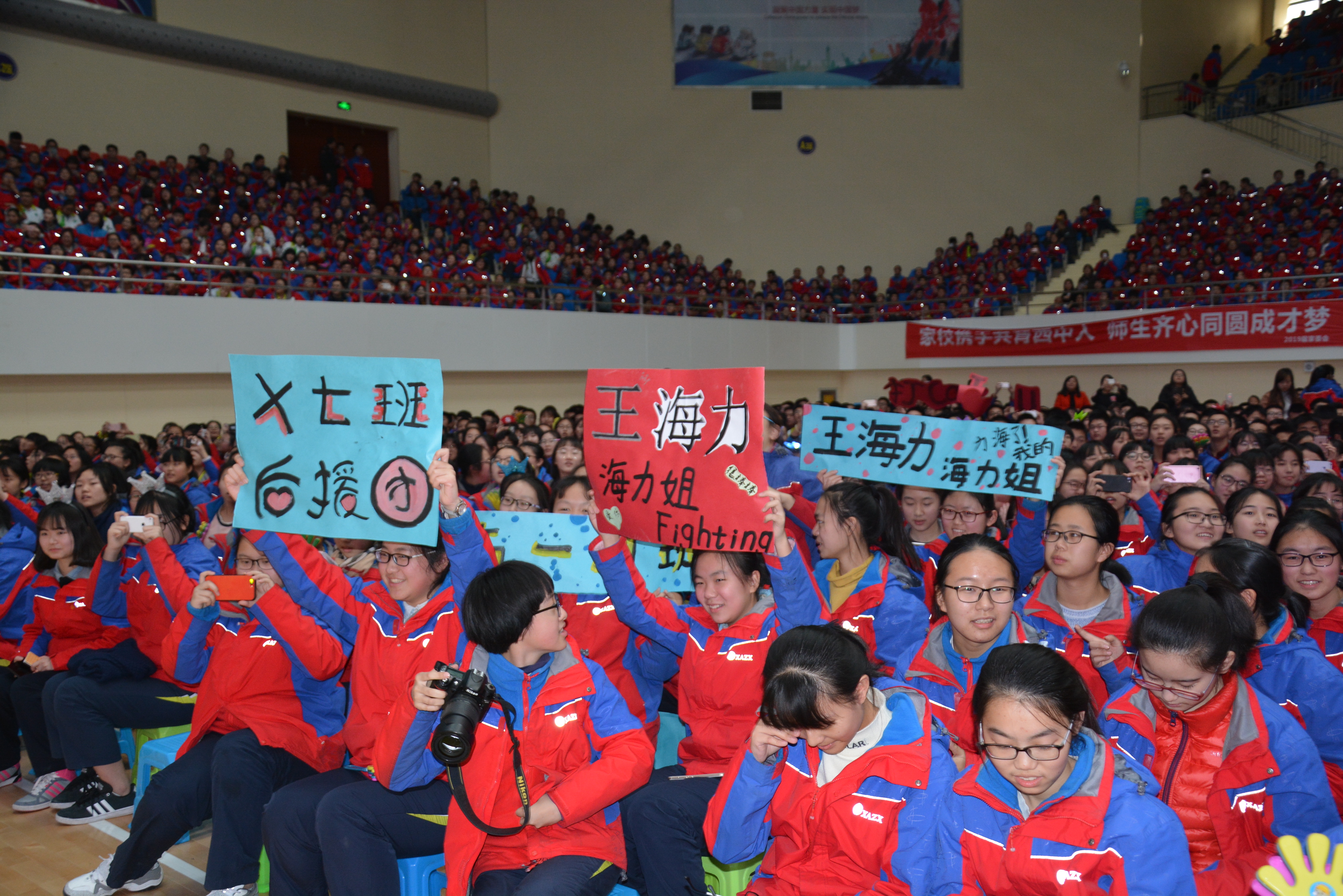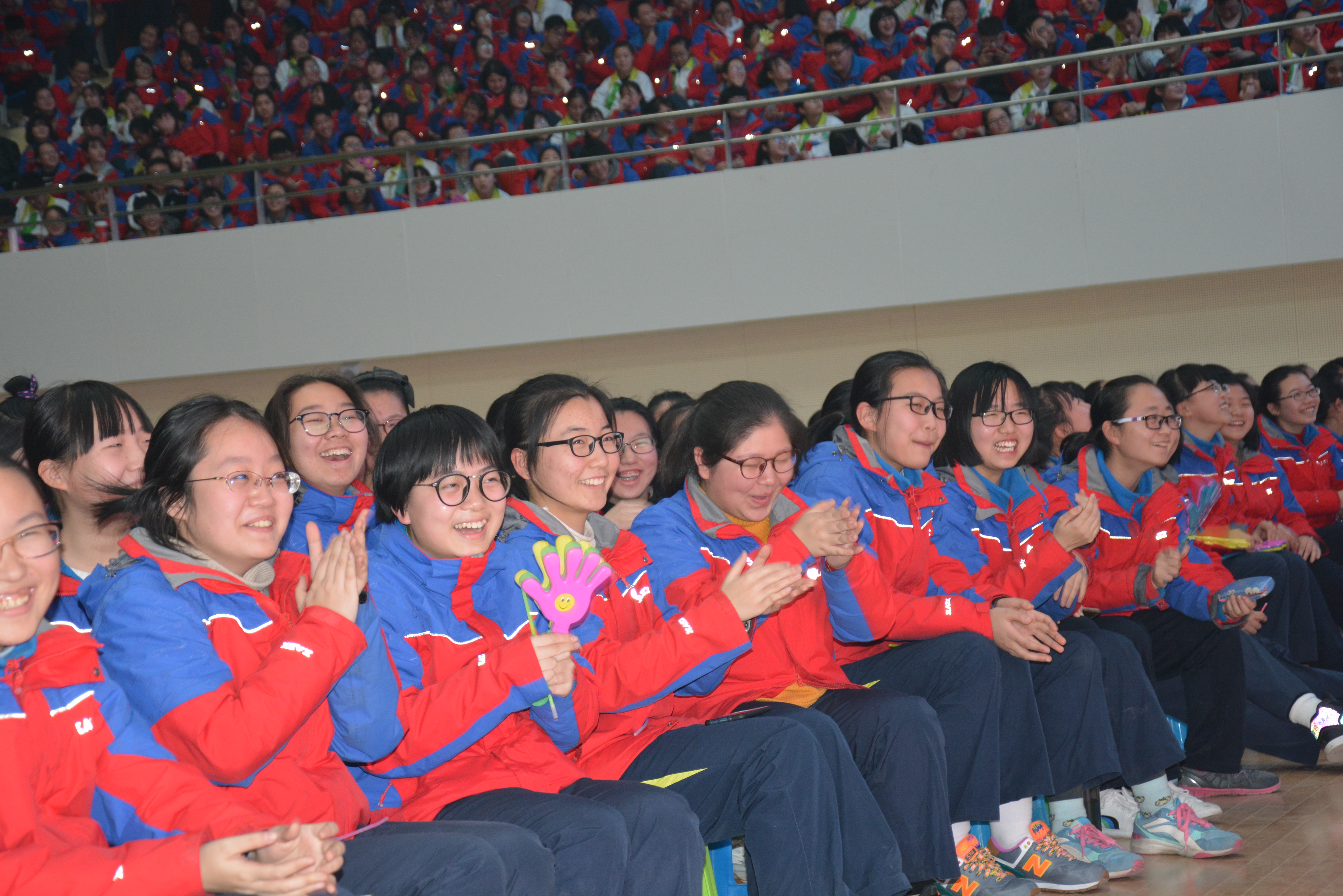 2017年12月30日下午,学校体育馆灯火辉煌,高一高二全体学生、家长、全校教职工以及六十六中、七十五中、爱知中学、经开一中校领导、鸿金鹏公司领导等共3000多人欢聚一堂,联欢迎新,开启2018新篇章!