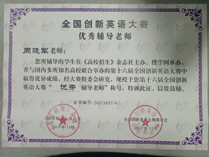 我校学生在第十六届全国创新英语大赛中取得优异成绩