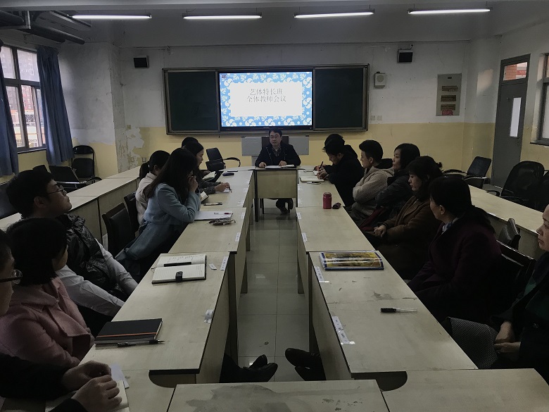 会上,郑主任向老师们介绍了艺体班成立背景。根据我校实际情况,结合艺术教育示范校专家复检建议,艺体班成立是势在必行的。混合编班学生差异太大,艺体生训练与下午辅导、晚自习不同步,不利于学生文化课学习。艺体班成立后,学校将加大管理力度,加强养成教育,专业训练和文化课学习两手抓两不误,让艺体生得到更好发展。班级将以班主任谢晓康老师为核心,负责日常教学及班级管理,凝聚班集体,浓厚学风;艺体指导老师为辅,主管训练,增强专业性;教学处、学生处、年级部也将加强巡视,保证班级日常教育教学工作。