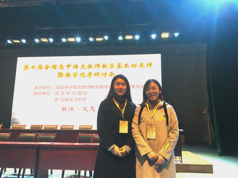 11月19日到11月21日,第七届高中语文教师教学基本功展评与观摩研讨会在浙江义乌召开,本届会议的主题是“正本清源,回归语言和语言教学本质”。我校语文组王婧雯、原雪两位老师参加了本届会议。