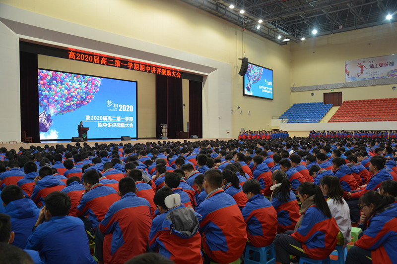 为了及时总结高二第一学期前半段工作,更好地推进和提升年级教育教学工作质量,11月21日下午,高2020届在我校体育馆召开高二全体学生期中讲评激励大会。学生处何海林主任、年级部左宏莉主任、吕铎副主任、付斌副主任、班主任老师以及全体学生参加了此次大会。