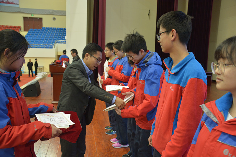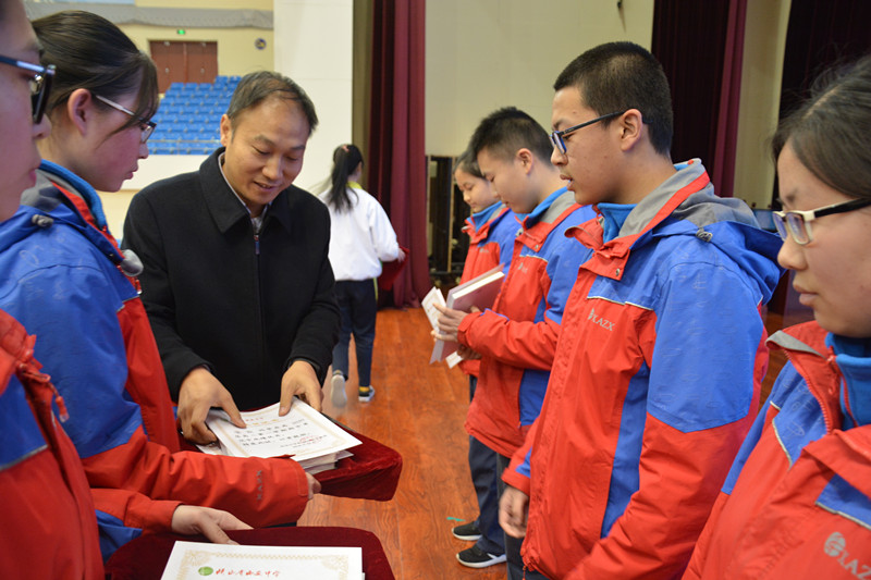大会第三项是由何海林主任、左主任、吕主任分别对在期中考试和各科竞赛中取得优异成绩的67名学生颁奖。表彰先进,是为了树立学习榜样。希望综合成绩优异的同学谦虚谨慎、戒骄戒躁、目标高远、勇攀高峰;祝愿竞赛获奖的同学在明年的省级、国家级决赛中再创佳绩、摘金夺银;也希望全年级同学都能以获奖同学为榜样,勤奋学习、脚踏实地、刻苦努力,在下半学期的学习中取得更大的进步。