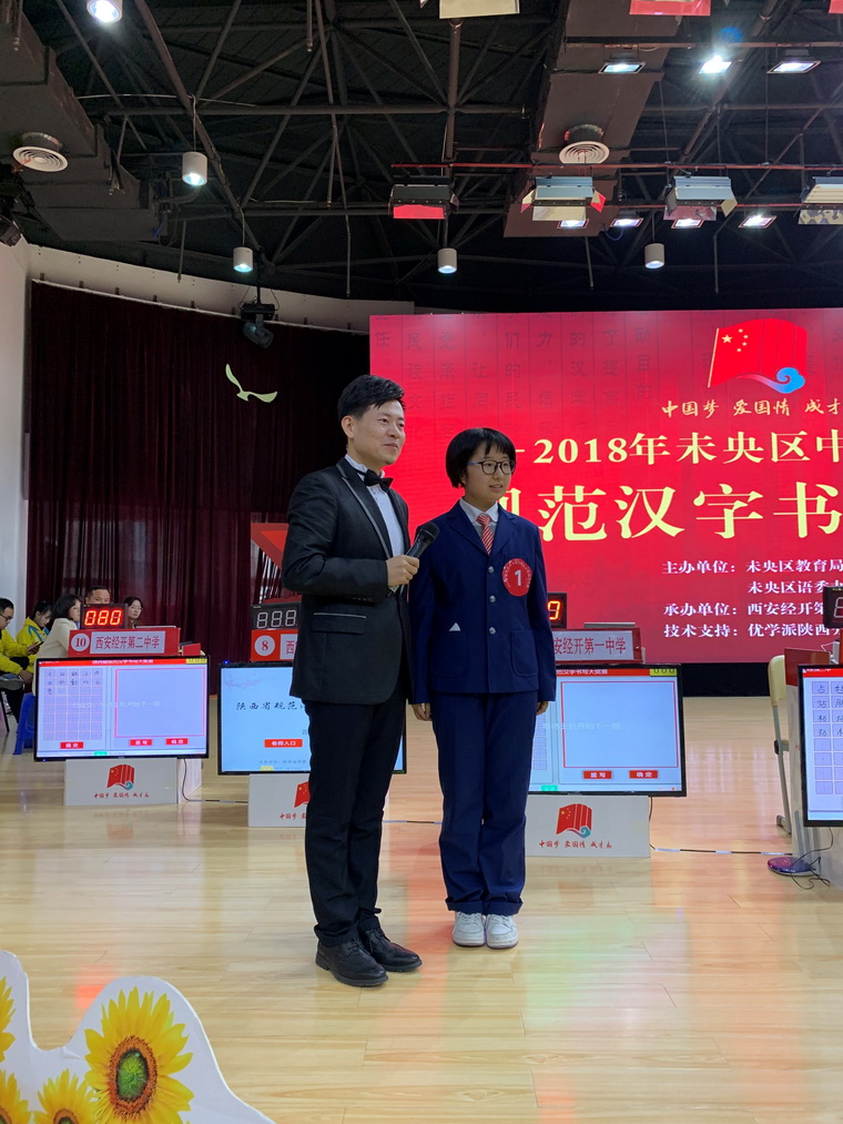 比赛中,我校四名选手凭借扎实的汉字基本功和丰富的汉语词汇储备,在汉字听写、成语辨析、汉字组字、古诗文联句四个环节过关斩将,环环取胜,一路领先,表现不俗,最终以总分400分的成绩夺取了未央区汉字听写高中组比赛的第一名,王晓开老师获得优秀指导教师,我校获得优秀组织奖。