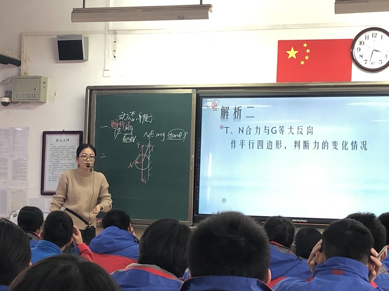 2018年11月28日下午第一节课,我校物理教研组全体教师听取了徐春媛和张宇洁两位老师的汇报课。汇报的课题分别为《共点力作用下物体的平衡》的第一、第二课时。两节课都充分体现了现阶段高一物理的知识特点,也都给予了学生充分的学法指导。
