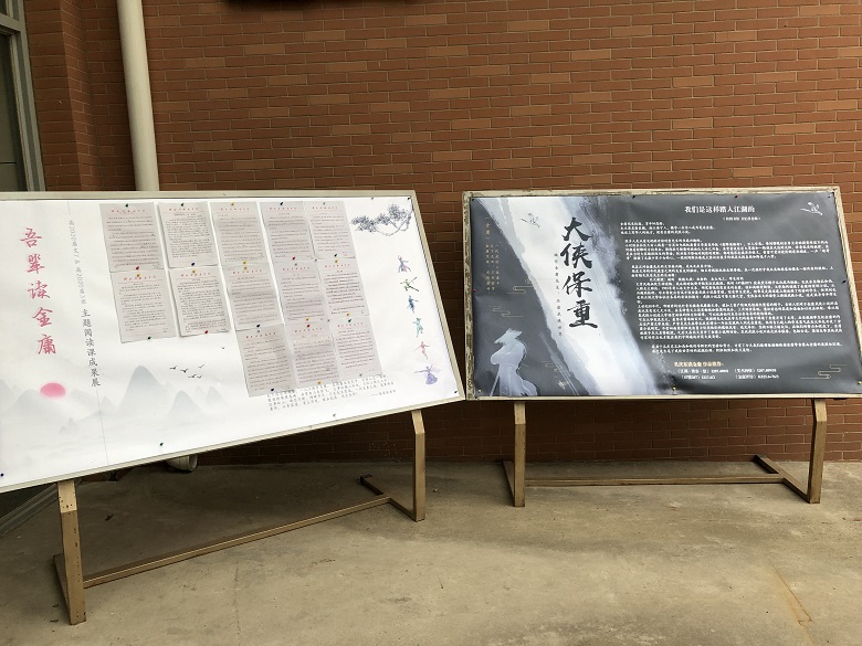 两次阅读课全程与图书馆联动,课后图书馆老师将同学们的读后感、读书报告和好书推介等进行整理评选并做了专题展览,卫忆萍老师用自己的阅读经历,以《我们是这样走进江湖的》为题参与了本次专题阅读活动,在展出中作为导览。展览新颖的主题与生动的内容吸引了广大同学前来参观,收到良好效果,达到预期目的。