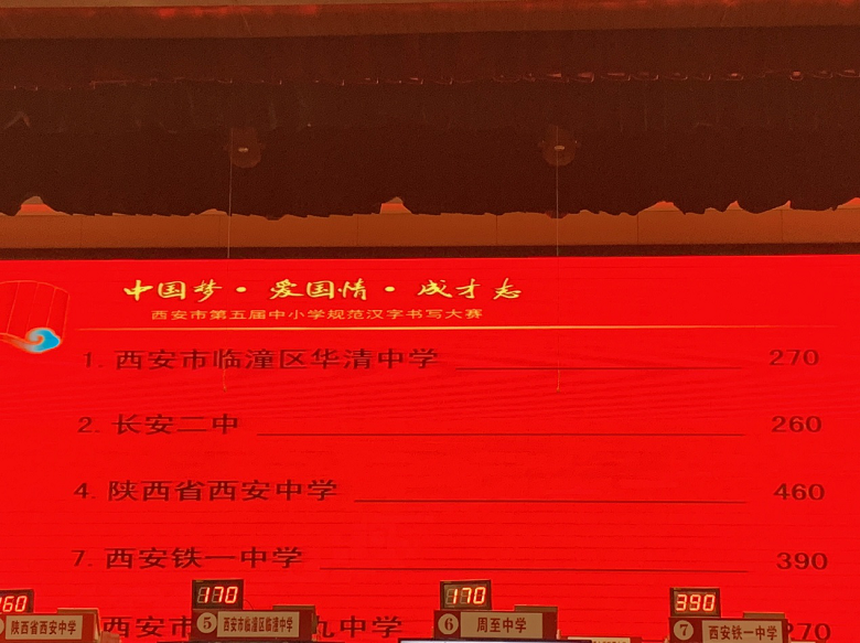 最终,我校以累计总分460分的好成绩获得了西安市汉听比赛高中组的第一名,我校获得优秀组织奖,指导老师王晓开老师获优秀指导教师奖。这也是继2017年市赛后我校的第二次的夺冠,我校也因此获得了西安市唯一一个晋级明年陕西省汉字听写大赛的名额。