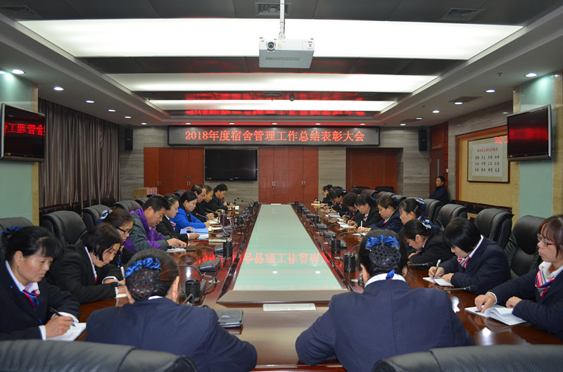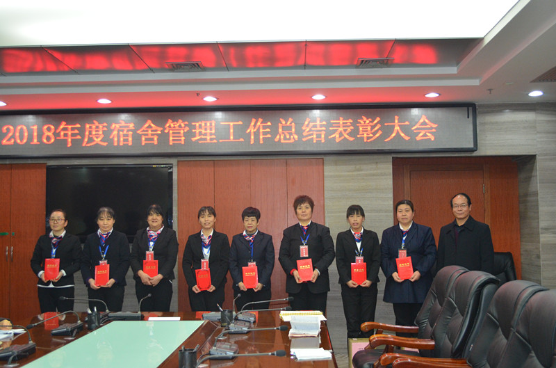 2019年1月11日上午,我校2018年度学生宿舍管理工作总结表彰大会在西一楼会议室召开,参加会议的有李文耀副校长、学生处何海林主任、王燕副主任、黎建军副主任、付斌副主任、樊兰君副主任以及物业公司负责人和全体宿管老师。