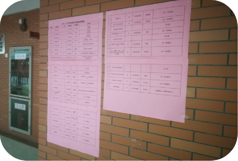在上学期选修课的基础上,本学期教学处在全校范围内征集选修课程、高一年级全体学生走班选课。最终,共有科技创新类、人生规划类、文化传承类、综合实践类、学科特色类、艺术体育类6大类,32门课程,34位老师实开选修课程,课程涵盖所有学科,包罗万象。在日常的选修课检查中,学生走班秩序良好,教师课程安排充实。