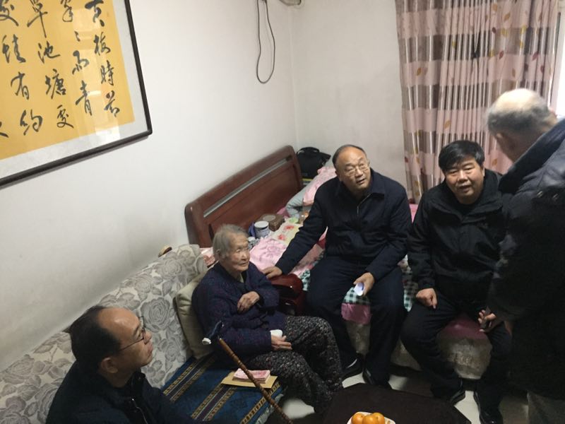 1月18日,张克强校长和陈玉红主席陪同省委老干局王林平副局长一行三人前往西七路老校区看望慰问我校去世离休干部白德全同志的遗孀马惠芳老人,给老人送去组织的关怀和学校的温暖。领导们与现年100岁高龄的马惠芳老人亲切交谈,详细了解老人的生活起居、身体健康状况及家庭生活情况,鼓励老人在新的一年里继续保持积极乐观的心态,健康快乐地生活。衷心祝福老人家新年快乐、阖家幸福。家属激动地说:“我父亲去世9年来,学校从来没有忘记我们,每年都要来看望我们,对我们真的是太好了,感谢老干局,感谢学校……”|