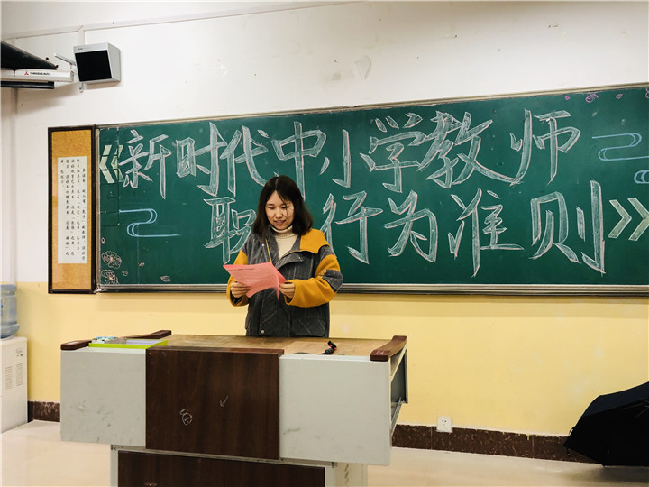 第二环节中,秦才玉老师向全体教师介绍了学习《新时代中小学教师职业行为十项准则》的重要性,马育谷老师宣读了《新时代中小学教师职业行为十项准则》的内容,组内教师都认真学习,并郑重签订了师德师风承诺书,相信所有教师都能够按照《新时代中小学教师职业行为十项准则》的要求,对自己严格要求,努力使自己成为四有好教师,为祖国的教育事业做出更大贡献。