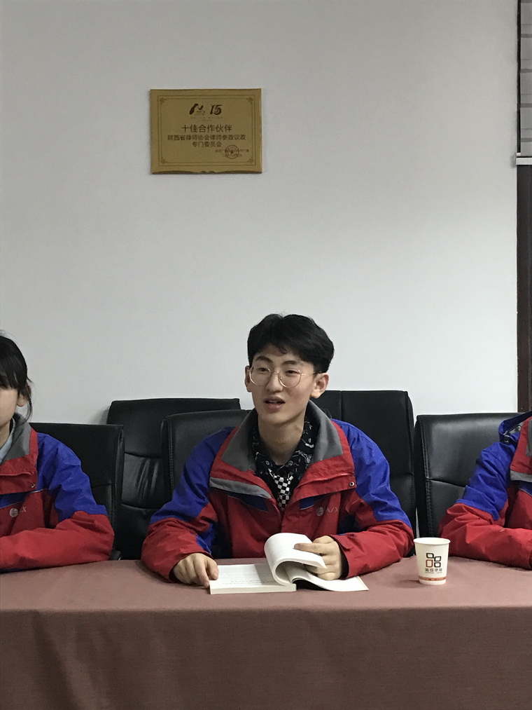 张主任对我校一行六人的到来表示热烈的欢迎。首先,张主任带领我校师生参观了律师事务所,介绍了省律师协会参政议政委员会的工作,并就法律届的相关提案的撰写做了详细的指导。其次,杨军副主任对我校四名学生能够走出校园,积极参与政治生活给予了高度赞扬,并对我校社团活动的展开进行了指导,并提出了宝贵的建议,对同学们将来的发展寄予了厚望。会上,我校四名学生主动请教,虚心学习,收获颇多。