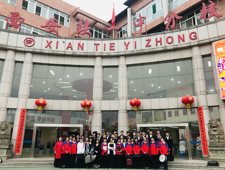 西安中学管弦乐队于2012年成立至今,历时7年,参加了数项省、市级比赛,其中最为盛大且常见的便是春芽杯了!2019年3月17日,我校管弦乐团赴铁一中初中校区参加2019年的春芽杯团体比赛。赛场上,同学们精神饱满、士气高昂,用美妙的音乐旋律带给了台下评委及观众一场优雅的音符盛宴。在最后一声短促的高音落下时,全场响起了热烈的掌声.回程之前,同学们聚集在铁一中教学楼前集体合影留念,同学们才得以在赛场上尽情发挥,又一次为我校争取了荣誉。