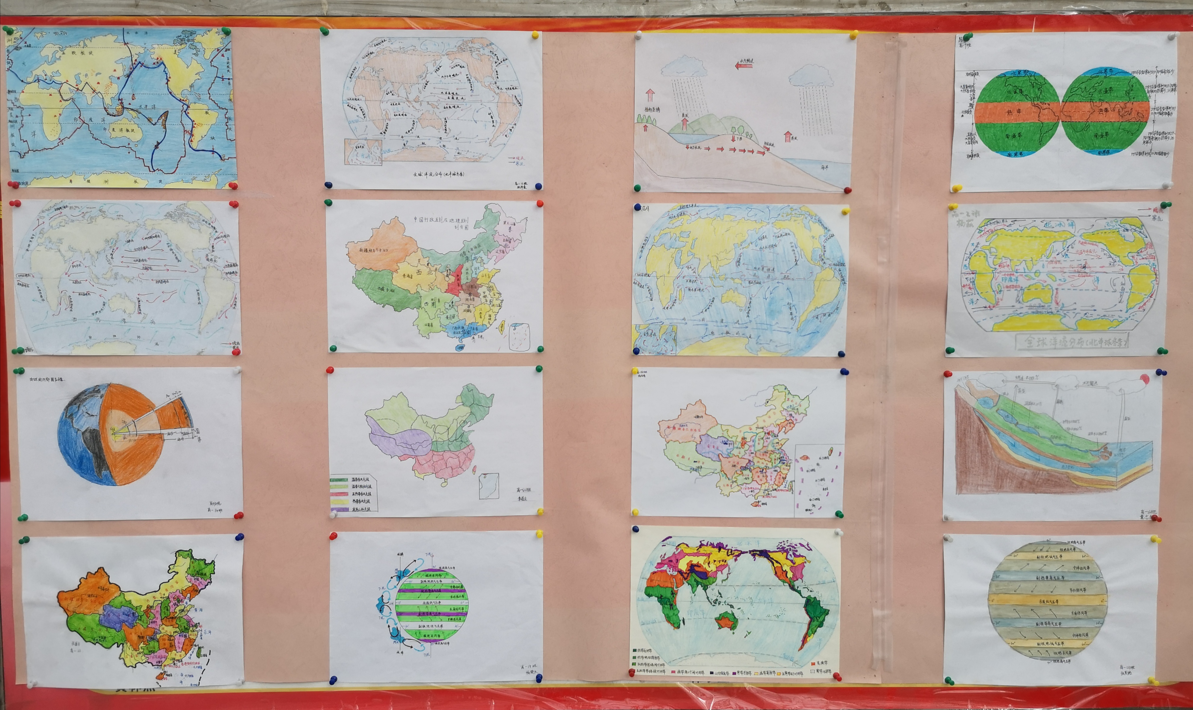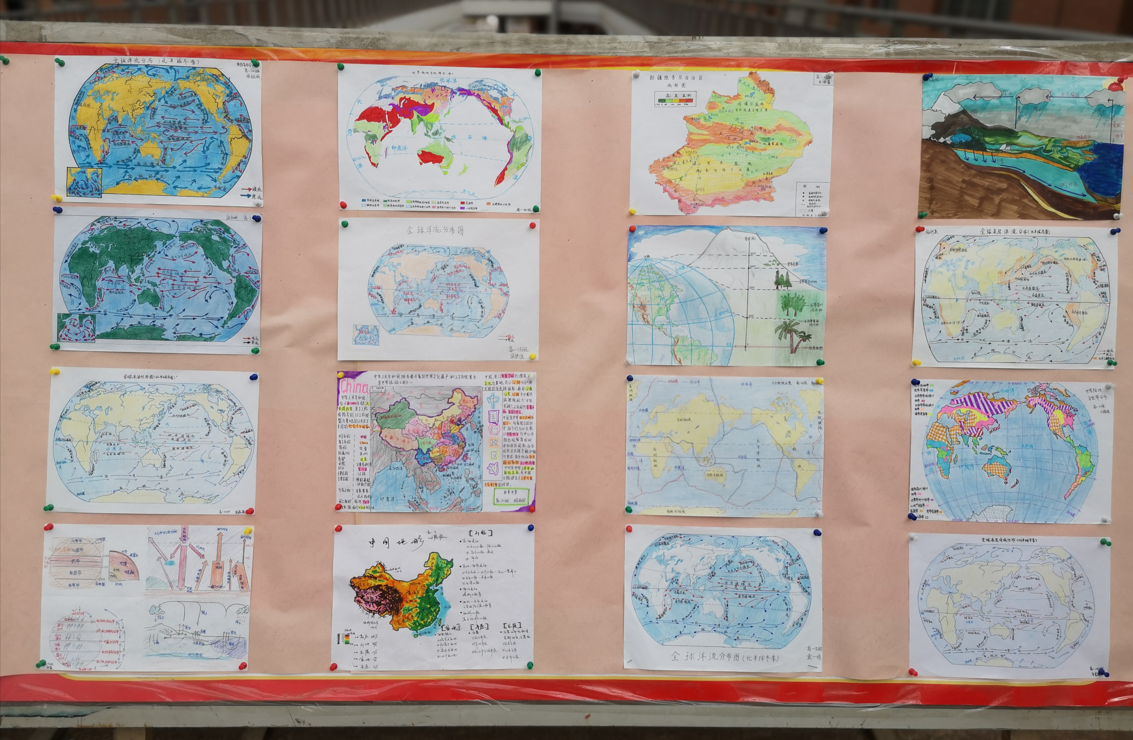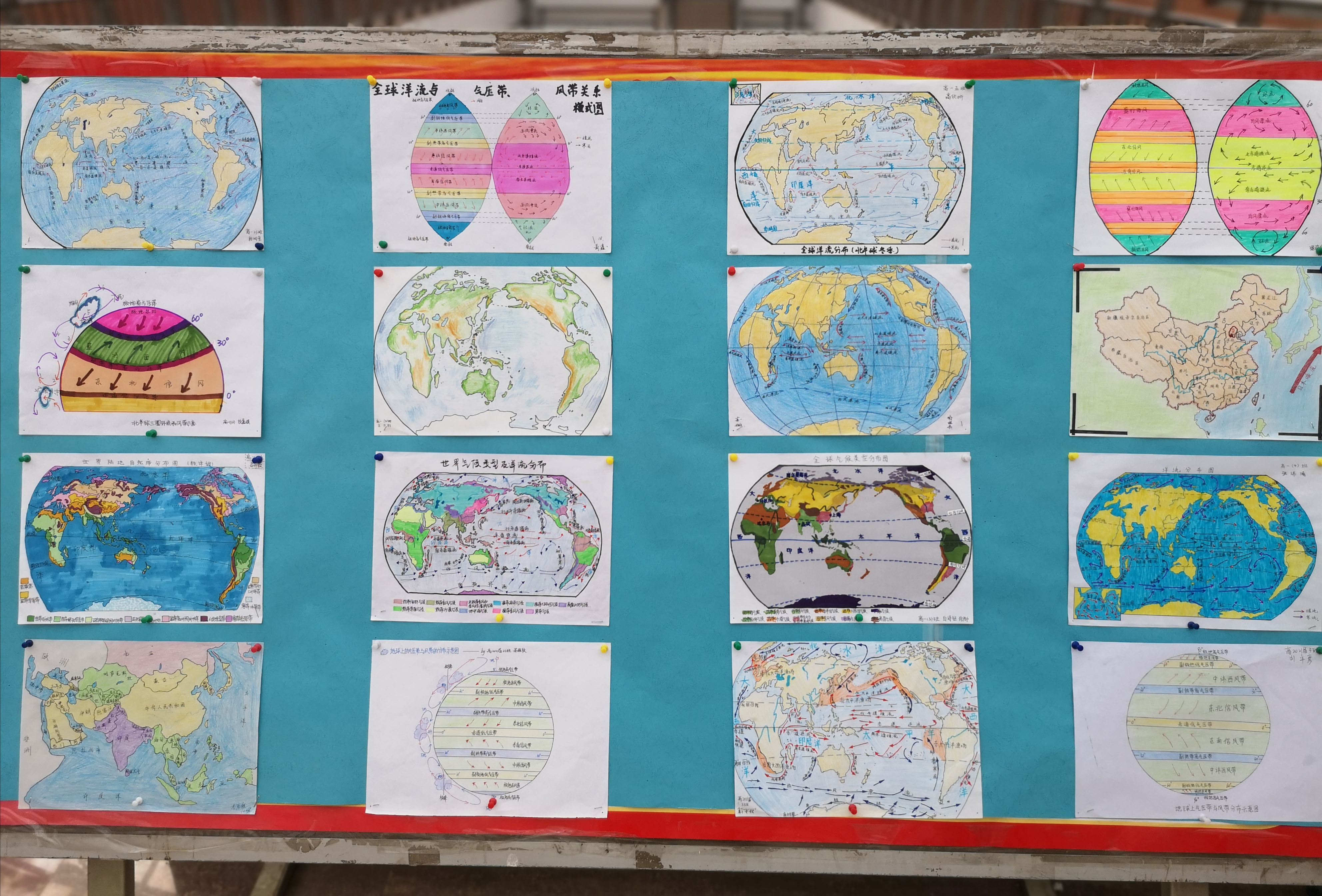 获奖作品的主题多样,思维发散,体现出了地理学的空间思想。包括世界和中国的行政区划图、世界洋流分布图、世界和中国的气候类型图、世界和中国的地形图、六大板块示意图以及其他创意地图,每张地图都是世界的一个小小缩影。