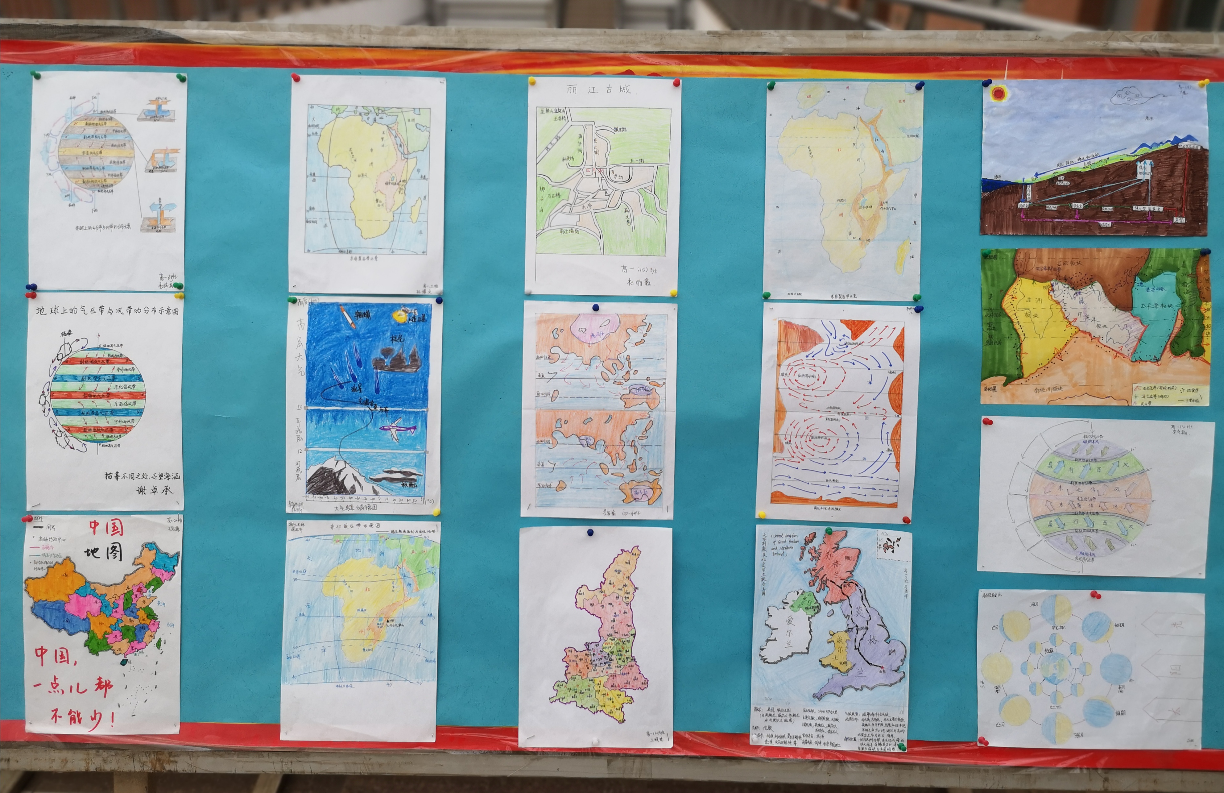 近日,我校高一地理备课组在年级部的大力支持下在教学南楼五层举行了以“地气水土生,山川丹青成”为主题的学生手绘地图展,引来大量学生驻足观看和学习。