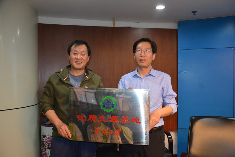 魏友团代表武汉大学感谢西安中学长期坚持素质教育,为武汉大学输送了大批优秀毕业生,并向我校授予武汉大学“优质生源基地”学校牌匾,西安中学校长助理胡杰代表学校接受授牌。