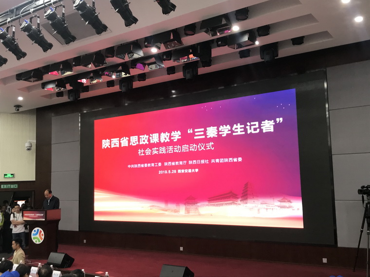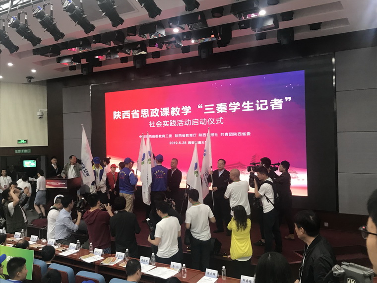5月28日,由中共陕西省教育工委、陕西省教育厅、陕西日报社和共青团陕西省委,共同举办的“三秦学生记者” 社会实践活动在西安交通大学启动,我校高一11班45名同学在校党委副书记薛锋、校团委副书记李鑫、年级部副主任黎建军和班主任鲁晨老师的带领下参加了本次活动。