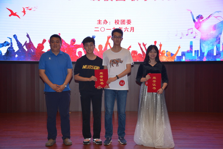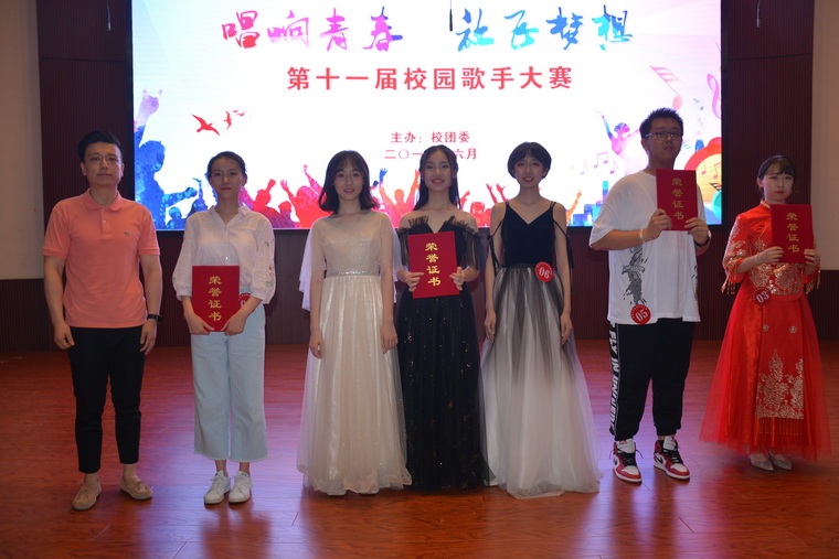 为丰富校园文化生活,努力营造积极向上、健康文明的校园文化气氛,为学生提供展示自己才华的舞台,6月10日晚,由校团委主办的“唱响青春,放飞梦想”第十一届校园歌手大赛的决赛在艺术中心报告厅圆满落幕。本次比赛邀请王亚钧、徐仕岿、张晓燕、刘满鑫、宋雨晨等5位老师担任大赛评委并为获奖选手颁奖,高一、高二近500余人观看了比赛。