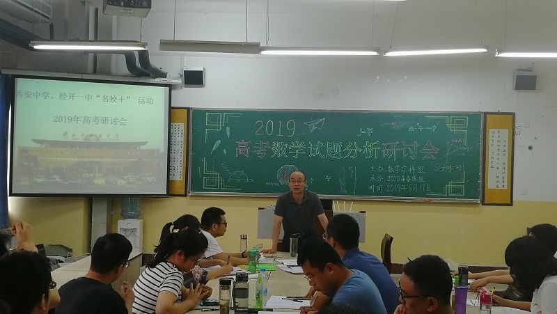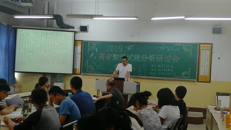 2019年高考已落下帷幕,为了更好的把握高考动向,促进教师加强高考研究,提升新高三高考复习备考效率。数学学科组于2019年6月17日下午举行了“2019高考研讨会”。活动由数学学科组组长焦宇老师主持,数学组全体教师和经开一中数学组老师共同参与。