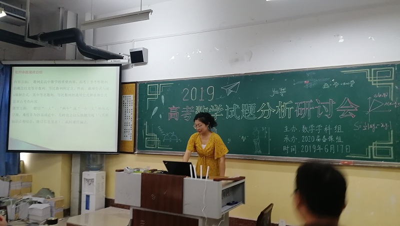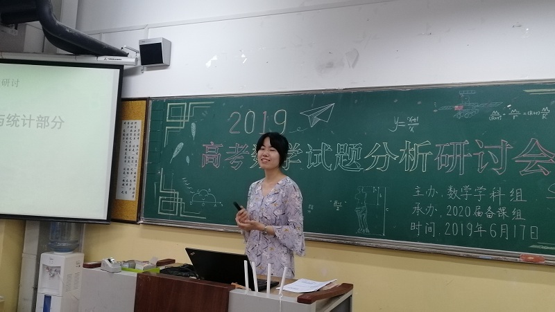 首先,焦老师对这次活动的目的和活动意义做了阐述。然后由吴贺笃老师、杜薇老师就2019年高考全国卷文理科数学试题做了全面细致的分析和展示。