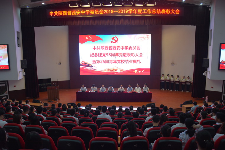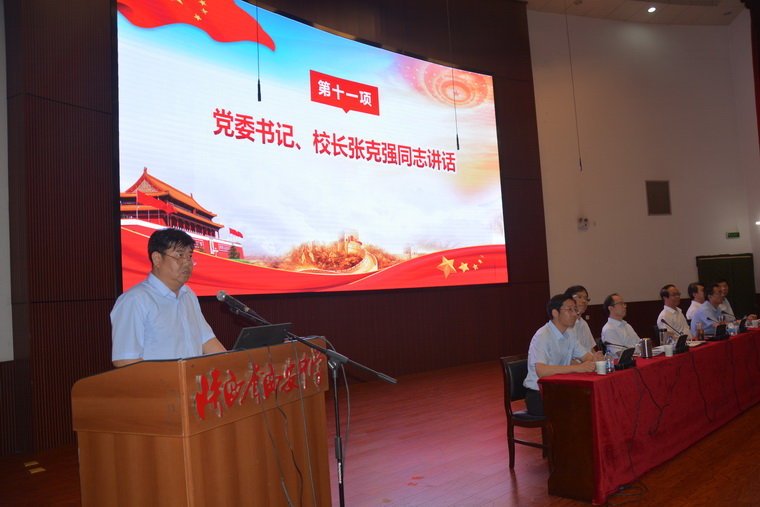 6月30日下午,我校党委组织召开了纪念建党98周年先进表彰大会暨25期青年党校结业典礼,校党委书记张克强、副书记薛锋及党委委员李文耀、雷琪平、薛党鹏、石峰虎、胡杰、任康元出席了会议,我校全体党员、第25期青年党校学员一同参加了会议。会议由党委委员李文耀同志主持。