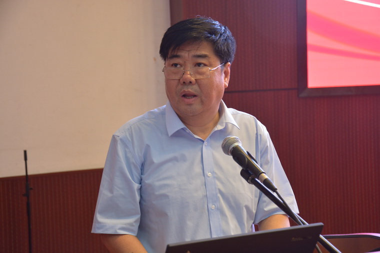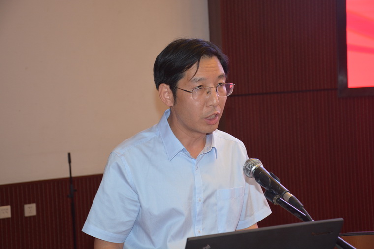在庄严的国歌声中,大会拉开了帷幕,首先由党委副书记薛锋同志进行总结讲话。薛副书记系统梳理了一年来党委、团委、工会的重点工作,对各支部工作进行了总结评价,对一年来各支部和党员教职工、25期青年党校学员取得的优异成绩进行了肯定,并对下一步开展党建工作提出了总体思路与想法。