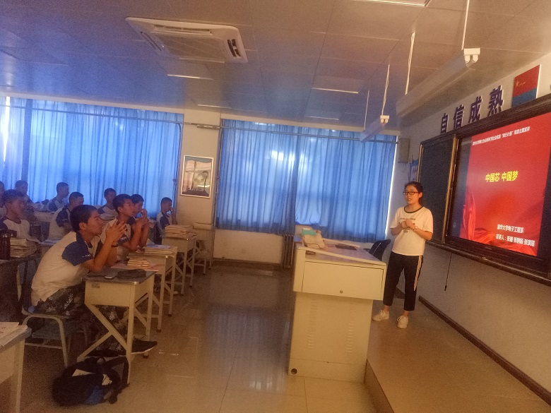 7月6日,在秦才玉老师的组织下,在航空7班教室里,2013届2班学生张珊为航7 和航8班的学子们做了“拼搏、成才、爱国”的主题宣讲。