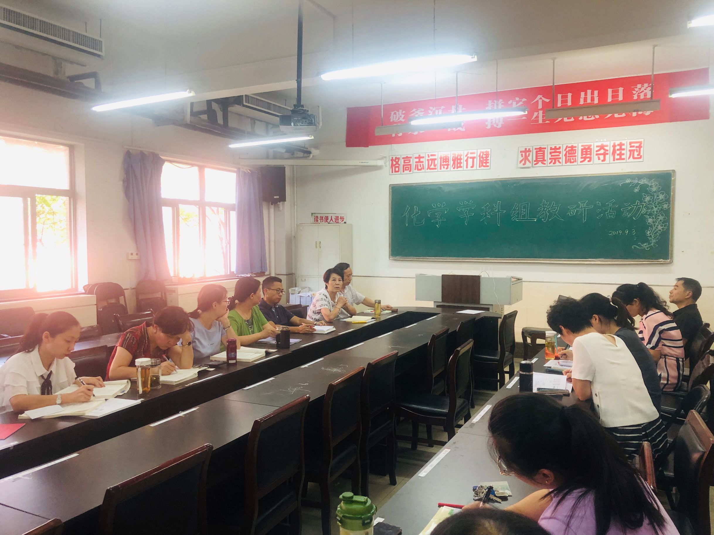 2019年9月3日下午利用集体备课时间,化学学科组全体教师在学科组长李萍老师组织下共同开展了2019-2020学年度第一学期第一次教研活动。本次教研活动在明确学校本学期教学工作前提下,李萍老师将本学期化学学科组教学工作、教研工作、竞赛工作进行系统安排。