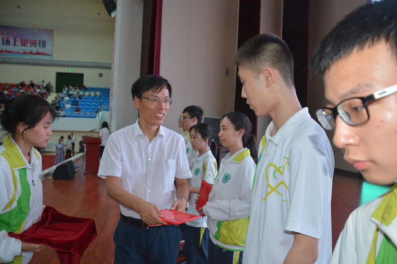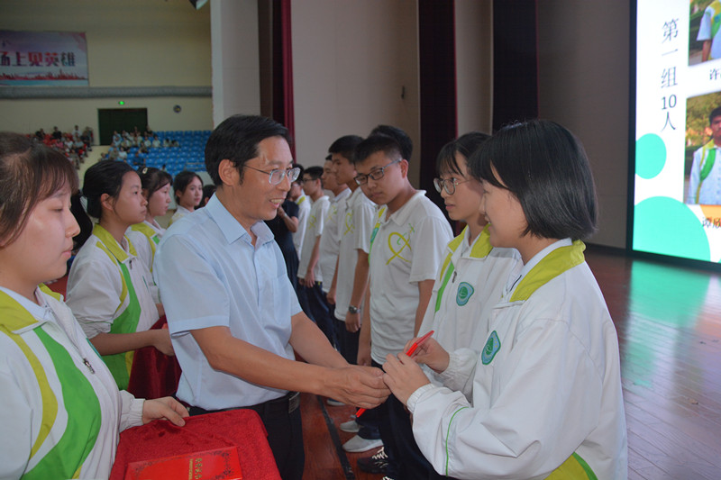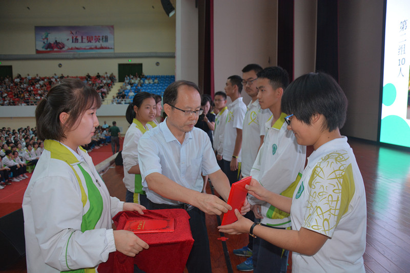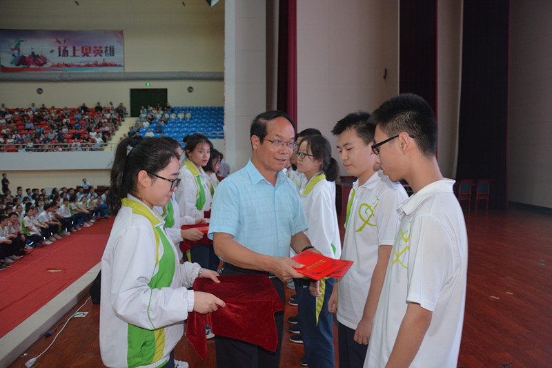 大会最后进行了隆重的颁奖典礼。第一次摸底考试评选出来的30名学习标兵,40名学习优秀生,300名进步生受到表彰。优秀学生的照片、姓名、班级在大屏幕上荣耀展示。他们走上舞台,在全体师生和家长的目光中接过荣誉证书。他们是成绩优胜者,也是学习中有追求、有毅力、有方法的榜样和楷模。学校希望以这样隆重的表彰仪式,肯定优秀学子们的默默付出,也希望激发每一位学生的潜力和渴望,在拼搏的路上,早日走上自己的人生领奖台。