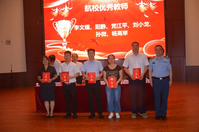 徐会宁书记宣读贺信及航校优秀教师表彰决定,并现场为航校教师代表颁奖。