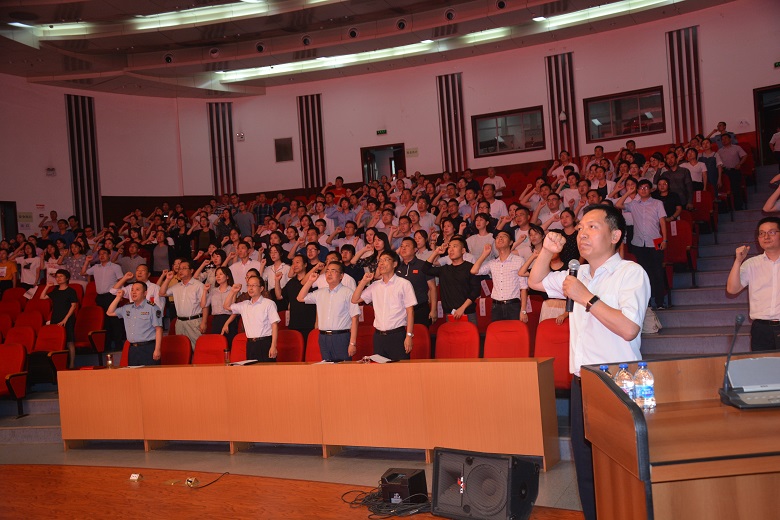 大会第九项,亢永平老师带领全体教职工在庄严的国旗下举起右拳郑重宣誓,在庄严、隆重、热烈的氛围中,一句句铿锵有力的誓言见证着西中教师教书育人的初心和立德树人的追求,增强了教职工的职业荣誉感和历史使命感。