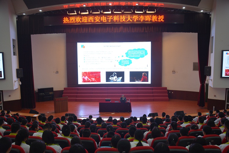 网络连接时空、信息跨越国界,安全贯穿始终,为普及网络信息安全知识,激发网络信息安全兴趣,搭建信息科学竞赛平台,10月23日晚,校教学处特邀西安电子科技大学网络与信息安全学院执行院长,博士生导师李晖为高一年级部分同学做了题为“网络安全 没有硝烟的战争”的学术报告,报告由教学处刘卫副主任主持,西电学生代表及招生办主任出席。