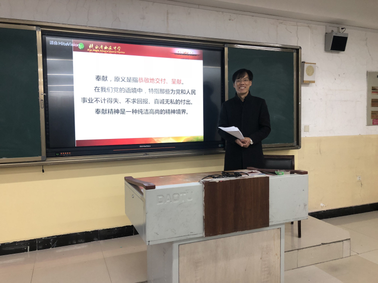 11月11日下午,党委委员薛党鹏同志在教学南楼五楼集体备课室为第二支部全体党员(包括入党积极分子)上了题为“发扬奉献精神,静心教书育人”的党课。