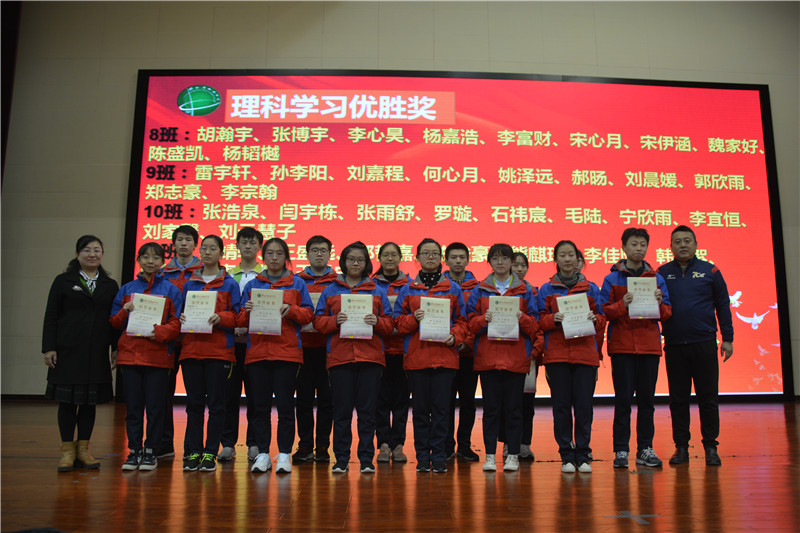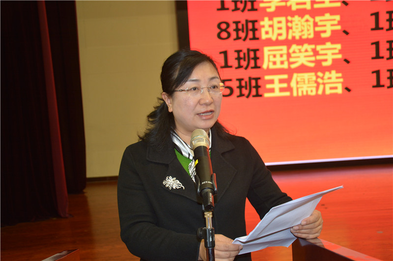 大会最后对年级理科前45名、文科前15名和各班前10名学生进行了表彰。年级部敖宏铭老师宣读了表彰决定和表彰名单。