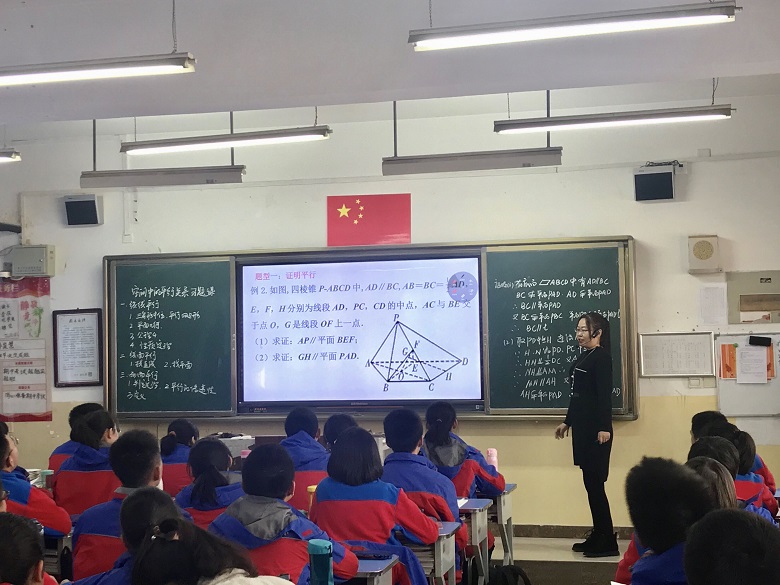 张茜老师在高一20班讲授了《空间中的平行关系习题课》。根据听课老师对教学环节观察和记录反馈,评课也针对各个环节展开,课堂四个环节的主评人分别是杨林老师、刘婵老师、高欢老师、李晶老师。本节课是一节习题课,针对最近所学的空间中的平行关系展开,先系统整理了空间中的三大类平行关系,以及每一种平行关系的证明方法,三种方法的归类整理非常清晰的指明了证明的方向和方法,接下来用几个例题,深入浅出的巩固和加深的对平行基本定理的认识和应用,并反复强调书写的规范性,大胆猜想,小心求证。题型二是一个折叠问题的题目,旨在让学生习惯各种不同背景下的证明问题,不能只习惯于简单的棱锥棱柱。题型三是更灵活的探索性问题,难度较大。但是整堂课学生参与度很高,掌握的也非常好,思维很活跃。