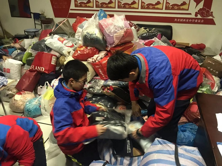 爱心不分大小,衣物不分新旧。在年级部和班主任的大力支持和积极动员下,高一、高二全体团员青年积极响应号召,同学们对家中闲置的过冬衣物进行清洗整理,在短短的三天内共捐赠冬衣2000余件。捐赠活动后,校团委组织学生干部对捐赠衣物进行了分拣、打包,这些饱含温暖与祝福的衣物,将尽快送往子洲贫困学生手中。