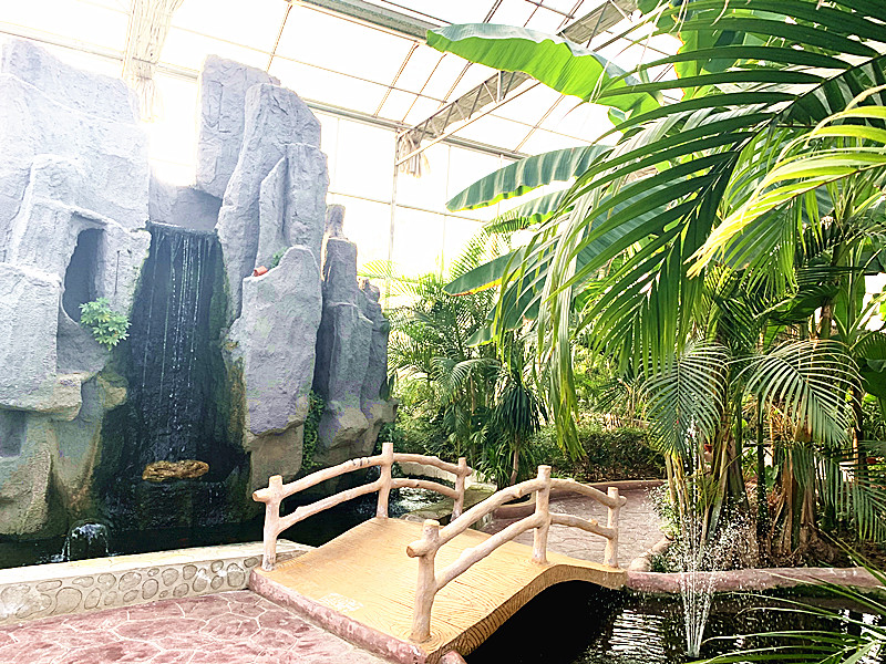 “好漂亮的污水处理厂,像花园一样,和我想象中完全不同!”走进污水处理厂,干净美丽的环境让同学们啧啧称奇。同学们首先在中央展厅集体观看了宣传片,对于厂区的构建、污水处理的流程、材料的性能等方面有了初步的了解;接着跟随厂区工作人员来到智能温室大棚,只见郁郁葱葱的热带植物中,夹杂着小桥流水,旁边的蔬菜大棚里,种植着无土栽培的青菜、白菜等蔬菜瓜果,优美的环境仿若走进了植物园,“大家或许想不到,这么美丽的花园大棚下面,其实是污水池。” 厂区工作人员说道,这两座智能大棚是利用水温的温差实现制冷和制热,常年20摄氏度,处理过的中水用作循环景观水,而无土栽培的蔬菜也被送往员工食堂。