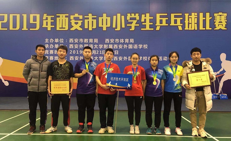12月21——22日,由西安市教育局、西安市体育局联合主办,莲湖区教育局、西安外国语学校承办的“2019年西安市中小学生乒乓球比赛”在西安外国语学校举行。我校乒乓球队代表经开区参加比赛。
