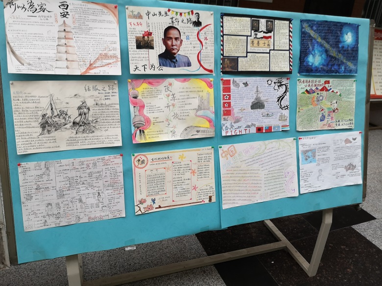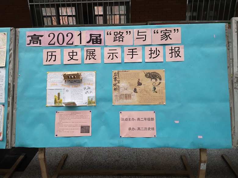 2019年11月到12月经过两个月准备与制作,高2021届主题历史手抄报活动成功开展,本次活动以“家族”或“路”为主题,历代沉浮卷帛上,史中真义谈笑间。以史为鉴,可以知兴衰。“家”和“路”可指代多种历史意向,可以是当下的“一带一路”,也可以是马丁路德信仰的“救赎之路”,也可以说是家族里有故事的人物等。当代中学生在具有科学精神的同时,更应该加强历史文化素养,才能更好地适应当今社会的需求。高二文科学生广泛参与,活动展示时间持续两周,作品形式多样,图文并茂,取得了“广播种、齐丰收”的活动效果,获得了在校师生的一致好评,丰富了同学们的校园生活。活动采取以班级和个人双重评比形式,分制作展示、评委打分、观众点评三个环节,优秀者予以奖状奖励。