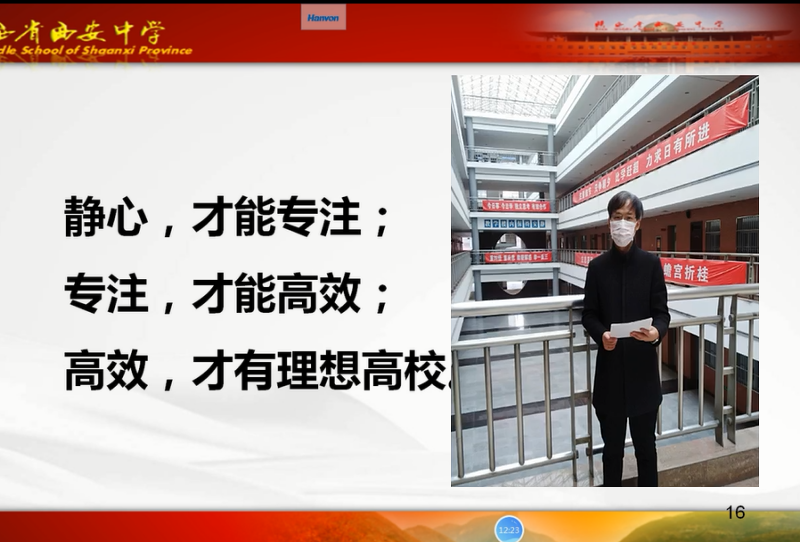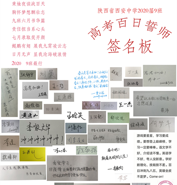 2月28日,距离2020年高考仅剩100天了,疫情尚未结束,前方还在决战,停课不停学,我们学习的步伐不停歇。在特殊的疫情期间,陕西省西安中学将2020届高三年级复习备考激励大会搬到了线上。学校薛党鹏副校长、高三年级左宏莉主任、吕铎副主任、付斌副主任等领导及高三教师、高三学生、家长一同相聚在网端,通过“云誓师”的形式为同学们2020年地高考呐喊鼓劲,助力加油。