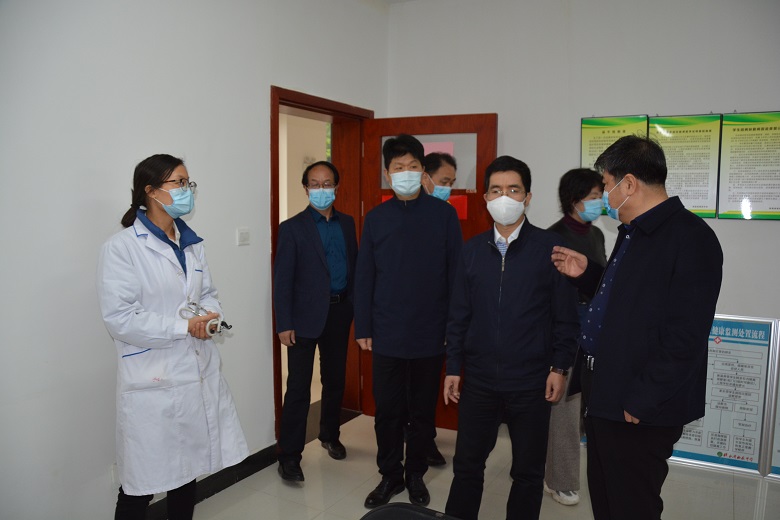 张选民副秘书长一行先后实地察看了空军青少年航空学校、学生餐厅、宿舍、教室、留观室及学校防疫物资储备室等重点场所。每到一处,他都进行逐一检查,仔细询问学校防疫措施的开展、师生入校体温筛查流程、防疫物资的储备、应急处置程序等情况,对我校完善的制度体系、健全的预案措施、科学的筛查流程、充足的物资保障、有序的工作开展给予了充分肯定。
