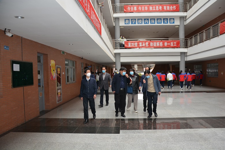 4月20日,是西安市高一、高二年级开学复课的第一天。上午,西安市政府副秘书长张选民与西安经开区管委会副主任刘明利、市政府办公厅六处副处长李静、西安经开区管委会教育局局长杨永望、市教育局体卫艺处谢婷一行来我校检查督导高一高二年级开学复课情况。