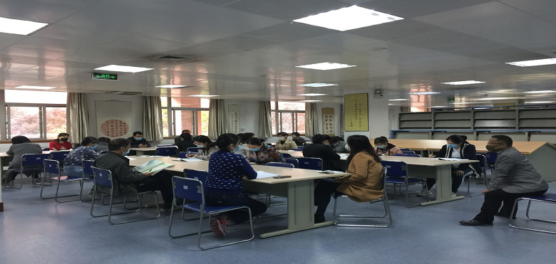 莺莺四月天,沉寂许久的校园迎来高一、高二学生的回归,花香伴书香,朗朗书声响。4月20日上午8点语文组高一、高二全体语文教师在图书馆二楼宽敞的阅览室举行本学期第一次实体教研活动。